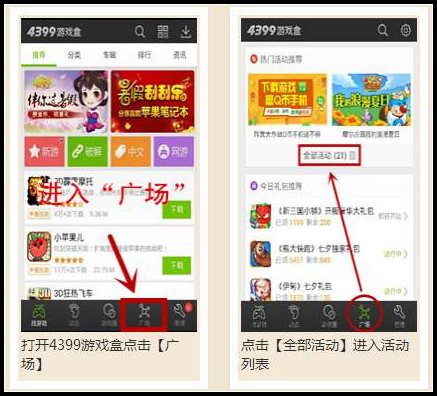 1、首先通过右上角的设置按钮登录你的4399账号,然后点击下方的【广场】,点击【全部活动】进入活动列表。