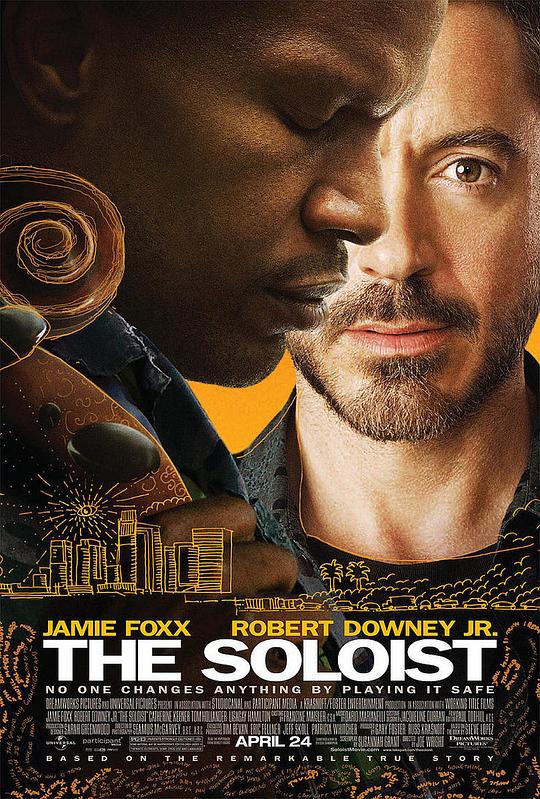 ◎简 介 史蒂夫·洛佩兹(小罗伯特·唐尼 Robert Downey Jr. 饰)是一名洛杉矶时报的记者,最近因为一次骑行意外而住进了医院。在病床上,他经常听见附近传来优美的小提琴声,从而结识了天才小提琴手纳萨尼尔·埃尔斯(杰米·福克斯 Jamie Foxx 饰),渐渐地他发现, 埃 尔斯原来曾进修于声名显赫的茱莉亚音乐学院,然而却因精神分裂症而辍学,如今只能流落街头卖艺为生。洛佩兹决意将埃尔斯的故事写成专栏,为此他开始留意埃尔斯的一举一动,在相互了解的过程中,两人渐渐建立了深厚友谊,洛佩兹为了帮助埃尔斯完成音乐梦想甚至抛家弃业,然而埃尔斯的精神疾病却始终是两人之间的羁绊…… 本片根据史蒂夫·洛佩兹发表在报纸上的文章进行改编。