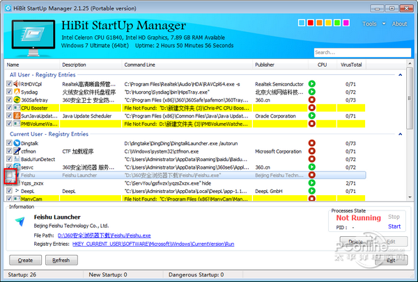 HiBit Startup Manager 2.1.25 正式版免费想得兵不厌诈厉害(浮想联翩)龙潭虎穴15. 当缘分走到尽头时真的不必去询问谁对谁错?一旦分开意味着天涯各安,追问的结果只会让我们更惆怅。惟有把这份情谊停留在彼此相处的时光,不再打扰,便是最后的温柔。15.有充分的理由支持 be supported by sound reasons《战国策》68.前世之不忘,后事之师。 HiBit Startup Manager是优化设置频道下深受用户的软件,太平洋下载中心提供HiBit Startup Manager官方下载。 HiBit Startup Manager最新版是一款非常专业的启动项优化工具,HiBit Startup Manager最新版能够让用户轻松地管理自己的应用程序,HiBit Startup Manager最新版能够对电脑中的自启动项进行管理,从而让电脑达到优化、加快电脑速度的目的,软件可以显示桌面上启动的全部软件,软件还支持在主界面上管理软件的功能。  HiBit Startup Manager