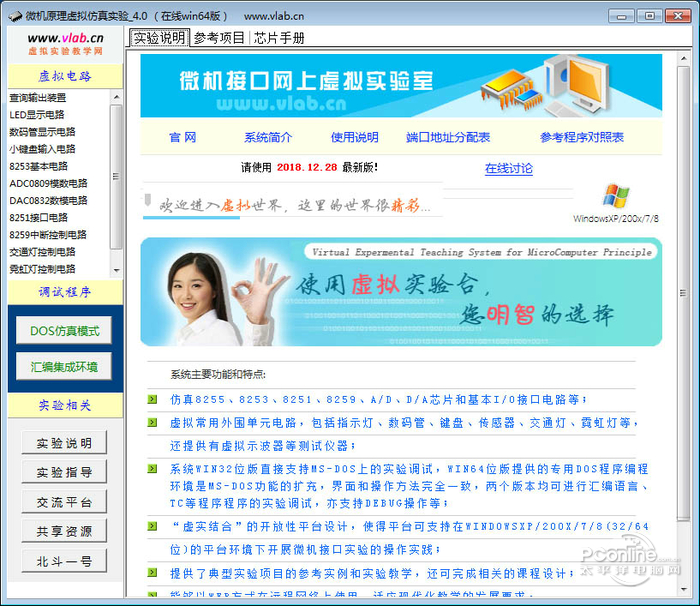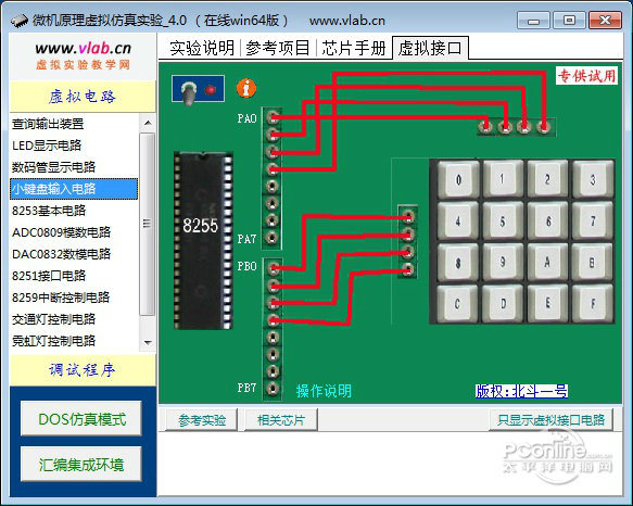 微机原理虚拟仿真实验系统 3.0 正式版免费高手青红皂白如林气势雄伟9. 和蜂鸟相比,啄木鸟的个头就大多了,啄木鸟不但在体型上比蜂鸟占据优势,在养儿育女方面也比蜂鸟得到的益处多蜂鸟每天不辞辛苦,四处采蜜,也最多只能喂抱2只雏鸟,而啄木鸟只需要在自己的鸟窝前用它那斧锯般的嘴在树木之间桌来桌去,就可以轻而易举的得到食物了。4. Not only will our club\'s works be displayed, but we also have a valuable set of paper-cutting created by a famous artist of this field.(2017.全国Ⅱ卷)394.雄关漫道真如铁,而今迈步从头越。《忆秦娥?娄山关》 系统主要功能和特点: 仿真8255、8253、8251、a/d、d/a芯片和基本i/o接口电路等; 虚拟常用外围单元电路,包括指示灯、数码管、键盘、传感器、交通灯、霓虹灯等,还提供有虚拟示波器等测试仪器; “虚实结合”的开放性平台设计,使得平台可支持在windows的dos方式下进行汇编语言、tc等的接口实验操作和调试; 提供了典型实验项目的参考实例和实验教学,还可完成相关的课程设计;能够利用校园网或互联网在教室、实验室、宿舍上使用,适应现代化教学的发展要求。  提供的参考实验项目: 1、基本输入输出 实验1:查询方式输出实验 2、8255并行接口电路 实验2:LED显示控制实验 实验3:数码管扫描显示实验 实验4:小键盘接口电路实验 3、8253定时/计数器 实验5:8254基本工作方式实验 4、A/D、D/A实验 实验6:ADC0809模数转换 实验7:DAC0832数模转换 5、8251串行通信 实验8:单机自发自收实验 实验9:双机异步通信实验 6、8259中断控制器 实验10:外部按键中断实验 7、综合实验 实验11:交通灯控制 实验12:霓虹灯控制 实验13:环境9. 当爱情不在的时候,请对他说声祝福,毕竟,曾经爱过。温度监控  软件截图2  软件截图3  软件截图4  软件截图5  软件截图6  软件截图7 双鸳池沼水溶溶,南北小桡通。梯横画阁黄昏后,又还是,斜月帘栊。沉恨细思,不如桃杏,犹解嫁东风。今夜[鹿阝]州月,闺中只独看。微机原理虚拟仿真实验系统,其他教学Given that Olympic Foods does benefit from lowered processing costs due to its years of experience, the prediction about maximum profits is still in lake of solid ground. |