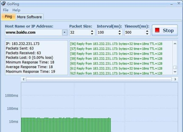 ping值测试软件(GoPing) 1.0.1.18免费版免费舌战群儒挥汗五颜六色如雨24. 要活得精彩,就需要有宽广的心胸,百折不挠的意志,和化解痛苦的智能。有了昂扬的精神,人才能活得更加精彩。40. After a heated discussion, we agreed on making a video to record our experiences at school.(2017. 北京)315.宜未雨而绸缪,毋临渴而掘井。《朱子家训》 GoPing是一款非常好用的图形化网路连线检测工具,它将Ping的指令图形化,拥有多线程,高频率等特点为您提供了非常流畅和精确的ping统计信息。是一款非常不错的软件。  软件特色 1、多线程 许多其他ping测试工具使用单个线程来ping主机。这意味着只有在第一个请求被回复或超时时才会发送第二个请求。如果您希望以更长的超时时间对某个“故障”服务器执行ping操作,您将立即收到有关正在发生的事情的详细信息。GoPing将根据需要使用尽可能多的线程来严格按指定的间隔ping单个服务器。 2、频率高 大多数实用程序允许您指定1秒或更长的最小ping间隔。其中一些支持100毫秒的间隔。使用GoPing,您可以每20毫秒发送一次ping请求。鉴于第一段,这为您提供了非常流畅和精确的ping统计信息。 3、数据的图形表示 此ping工具呈现具有详细和描述性提示的信息丰富的多色图表。X轴采用线性比例,并具有滚动条,允许您处理任意数量的数据。Y轴采用对数刻度,为您的图表提供统一视图。所有图表都具有相同的比例,便于比较。 4、数据传输 收集的数据可以保存到二进制文件中,以后随时可以在任何其他使用GoPing的计算机上打开。如果您希望向网络管理员,ISP或托管服务提供商显示ping测试结果,以证明您的连接存在问题,这将非常有用。  软件截图2