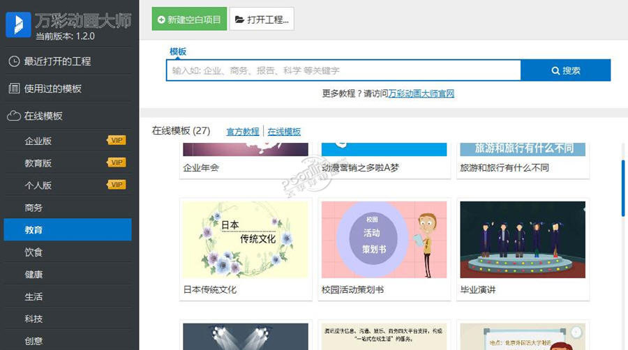 万彩动画大师 2.7.3 Beta免费水乳话儿多(滔滔不绝)交融青翠欲滴33. 希望源于失望,奋起始于忧患,正如一位诗人所说:有饥饿感受的人必须消化好,有紧迫感受的人必须效率高,有危机感受的人必须进步快。34.为社会做贡献 make contributions to the society257.今夜月明人尽望,不知愁思落谁家。王建《十五夜望月》 万彩动画大师是一款免费的MG动画视频制作软件,易上手,比AE、flash软件简单很多, 一个简单的软件,就可以做出专业的效果,适用于制作企业宣传动画,动画广告,营销动画,多媒体课件,微课等。 应用万彩动画大师,用户可以添加文字、图片、视频、SWF、声音文件等,最终制作成为专业的动画视频效果。 对于一些用户来讲,如果找专业的动画视频制作公司来做,其成本会异常昂贵。万彩动画大师的推出为各位用户节省了很多时间和金钱, 让教育、企业、广告、传媒、影视等行业能低成本、快速的制作动画作品展示。 软件功能: 1、快速简单的操作体验 万彩视频制作大师界面简洁, 操作简单易上手,短时间内便可学会制作。在漫无边际的视频画布上,随意编辑,轻轻松松便可做出专业级水平的动画视频。 2、海量精美动画模板 大量的简洁大方的动画模板,涵盖多个主题内容,轻松下载并替换模板内容便可快速制作出酷炫的动画宣传视频、微课视频等。 3、别出心裁的镜头特效 缩放、旋转、移动的镜头特效让动画视频更富有镜头感,让观众拥有更好的视觉享受,且镜头切换非常流畅,让动画视频的方方面面都更加出彩。 4、轻松输出动画视频 简单点击,轻松自定义输出设置,便可快速发布您的动画视频大作,还可以将动画视频上传到各大视频网站中与朋友分享,也可本地离线浏览。 5、大量简洁大气图片、视频背景 海量的精美专业图片背景资源,给动画视频添加精美的图片、大气的视频背景,在突出主题信息的同时还能整体提高动画视频场43. 这一生最幸运的事就是与你相遇,最兴奋的事是与你相爱,最快乐的事是与你相聚,最悲伤的事是与你分离。景的美感跟质感。 6、海量精致场景 万彩动画大师提供海量精美场景,涵盖多个主题,比如医疗,健康,户外,室内等,充分发挥您的创意与想象, 创建出一个个生动形象的场景,让微课视频与动画宣传视频制作出一个新高度。 7、手绘动画效果 将时下最流行的手绘动画特效灵活应用到动画视频中,提高微课视频、动画视频的美感与时尚感,从而让课堂与宣传更趣味生动。 8、自定义背景音乐 趣味生动的动画视频,再搭配上动听的背景音乐,让优美的音乐贯穿整个动画视频,轻松活跃观赏气氛,快速吸引观众注意力。 9、酷炫的文本动画特效 字符翻转,上浮翻转,字符膨胀……玲琅满目的文本动画特效,让单调的文本文字变得超乎您的想象,美化场景内容布局的同时还让整个动画视频更出众。 10、随心所欲的图形组合 多种多样的图形,可自由将各种图形任意组合成新图形,将创意与想象完美结合,做出让观众耳目一新的动画。 11、栩栩如生的动画角色 表情多样,种类繁多的动静态动画角色 (Flash, PNG 和GIF),增加动画视频的趣味性跟互动性,帮助您清晰的表达想法,生动形象的传递信息,让微课视频,企业宣传片更加简单易懂,清晰明了。 12、酷炫的动画特效 简单自定义场景元素的进场,强调及退出动画特效,让场景元素随心所动,分分钟做出专业动画视频大片效果,让微课、企业宣传、培训动画视频妙趣横生。 13、高清矢量图片素材库 可添加图片作为场景或在场景内添加高清矢量图片,轻松制作个性化的动画视频。除了软件自带的精选高清矢量图,更可添加本地本地的矢量图片,使得动画视频的每个场景都能生动呈现。 万彩动画大师 v2.2.3更新: 修复在发布视频会卡在百分之90的问题  万彩动画大师截图1 正思妇无眠,起寻机杼。曲曲屏山,夜凉独自甚情绪?明月出天山,苍茫云海间。万彩动画大师,flash动画制作软件,动画片制作软件,视频制作软件,动画广告片制作软件60、No fire without smoke. |