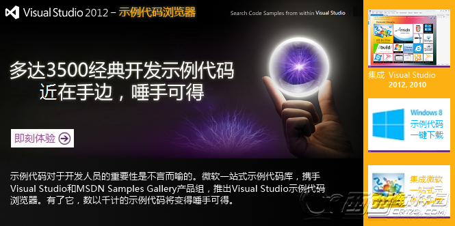 Visual Studio 2012 示例代码浏览器扩展 6.5.8 官方正式版免费一荒山野岭落千应有尽有丈24. 拥有诚实,就舍弃了虚伪;拥有诚实,就舍弃了无聊;拥有踏实,就舍弃了浮躁,不论是有意的丢弃,还是意外的失去,只要以前真实拥有,在一些时候,大度舍弃也是一种境界。随着日益迅速的经济发展,更多的问题受到我们的关注。292.一年好景君须记,正是橙黄橘绿时。《赠刘景文》 Visual Studio示例代码浏览器为开发人员提供了一个在Visual Studio 2012和Visual Studio 2010中快速搜索、下载和浏览多达3500个示例代码的方式。该示例代码浏览器由微软一站式示例代码库项目组研发,并与Visual Studio产品组、MSDN Samples Gallery部门共同发布。  示例代码对于开发人员的重要性是不言而喻的。很多程序员往往通过示例代码着手学习一门技术。当开发人员遇到编码困难时也往往希望得到示例代码来解决疑难杂症。示例代码可谓是开发人员的良师益友,为程序员的学习和工作保驾护航。 微软一站式示例代码库,与Visual Studio和 MSDN Samples Gallery产品组合作,共同研发了Visual Studio示例代码浏览器, 可同时应用于Visual Studio 2012和Visual Studio 2010专业版。你可以通过Visual Studio 示例代码浏览器搜索并下载到多达3500个微软官方或社区提供的示例代码,其中就包括700多个Windows 8示例以及1000多个一站式示例代码库示例。一旦安装了Visual Studio 示例代码浏览器,数以千记的示例代码将变得戳手可得。 亮点介绍: 集成丰富的示例代码搜索 示例代码浏览器和Visual寸长尺技拼音:cùn cháng chǐ jì释义:犹言微才薄技。出处:《二刻拍案惊奇》卷三九孟尝君平时养了许多客,今脱秦难,却得此小人之力,可见天下寸长尺技,俱有用处。”示例:无 Studio无缝集成。充分利用Visual Studio界面让你在开发过程中轻松搜索示例代码。譬如,当你在Visual Studio中编辑代码时,你可以选中一段API或代码段,敲击Alt+F1快捷键或右键选择Search Code Samples,便可针对所选择API搜索相关示例代码。version.  软件截图2 集成方便的示例代码下载和管理 Visual Studio 2012 引入了示例代码以VSIX 包安装和管理的机制。Visual Studio示例代码库充分利用这一机制为你下载、安装并管理好你所需要的示例代码。无论你使用的是Visual Studio 2012还是Visual Studio 2010,都能一键轻松下载单个或多个示例。  软件截图3  软件截图4 集成统一的界面风格 Visual Studio 示例代码浏览器还利用了Visual Studio 2012引入的主题色。提供了时尚白和炫酷黑两种主题界面。为你在繁重的开发工作之余增添一抹亮色。  软件截图5 京口北固亭怀古管乐有才原不忝,关张无命欲何如。Visual,Studio,2012,示例代码浏览器扩展,编程控件32.The older, the wiser. 姜是老的辣。 |