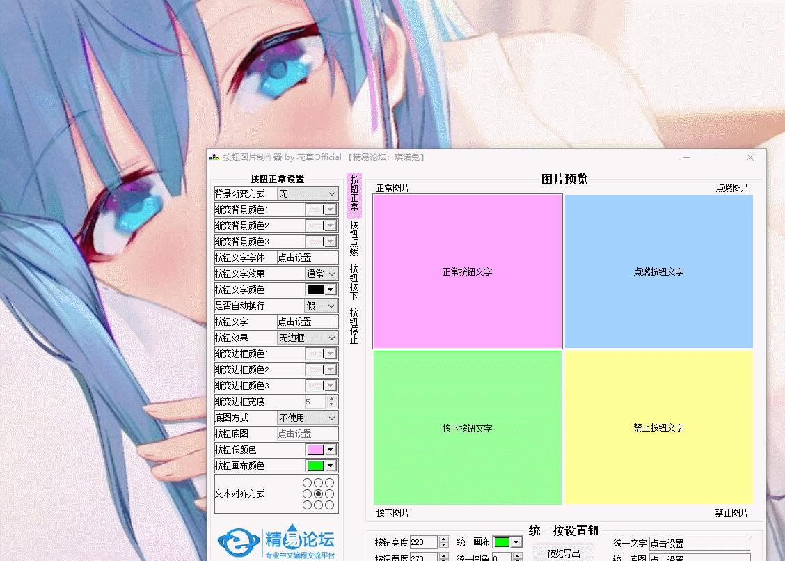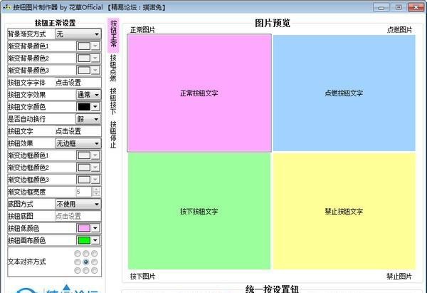 按钮图片制作器 1.0 正式版免费千慎言谨行手疾眼快方百计3. 思念是一首诗,让你在普通的日子里读出韵律来;思念是一阵雨,让你在枯燥的日子里湿润起来;思念是一片阳光,让你的阴郁的日子里明朗起来。我充分认识到英语对我的未来是多么的重要。40.工欲善其事,必先利其器。 按钮图片制作器是一款图形按钮底图图片制作器,支持多种选择,多种方式,效果预览,支持正常图片、点燃图片、按下图片、禁止图片四种按钮图片制作。  使用演示  软件截图2