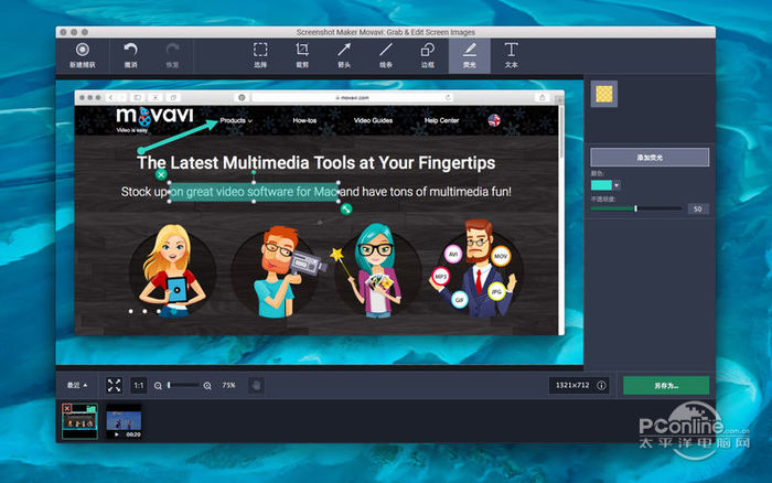 为您的 Mac 屏幕上所发生的一切捕获高质量快照,并将图像保存为最受欢迎的格式。 通过 Screenshot Maker Movavi,您可以进行以下操作: – 保存桌面的高分辨率图片 – 编辑屏幕截图: 裁剪、添加箭头、字幕等 – 以几乎任何格式导出结果 快速捕获 借助放大镜或参考线选择要捕获的确切区域。您还可以选择一个方便的捕获区域预设: 为整个屏幕、屏幕的一部分或者最后选定区域拍摄快照。 轻松编辑 您可以在保存之前修改捕获的屏幕。裁剪图像、剪切掉不需要的片段、复制和粘贴图片的任何部分。添加箭头、线条和框架等解释性元素、突出显示重要部分以及插入字幕。所有对象均可自定义,因此您可以调整颜色、边框、不透明度以及其他参数。您可以打开和编辑所捕获的最后 50 个屏幕截图中的任意一个 – 只需在窗口下半部分的历史记录中搜索皆可。 “无问题”导出 将完成的屏幕截图保存为任何方便的格式。该程序支持 JPEG、PNG、BMP 等最热门的格式,以及 TIFF、PCX、TGA 等不常见格式。 当您需要向别人展示自己的 Mac 上正在进行的内容时,Screenshot Maker Movavi 是一款必不可少的工具。 欢迎随时通过 //www.movavi.com/support.html 将您的问题发送给我们的支持团队。 我们很乐意收到您的来信并为您解决问题!  Screenshot Maker Movavi: Grab & Edit Screen Images Mac版 截图1 Screenshot Maker Movavi: Grab & Edit Screen Images的新功能  Screenshot Maker Movavi: Grab & Edit Screen Images Mac版 截图2  截图3  截图4  截图5 西窗又吹暗雨,为谁频断续,相和砧杵?候馆迎秋,离宫吊月,别有伤心无数。豳诗漫与,笑篱落呼灯,世间儿女。写入琴丝,一声声更苦。元和天子神武姿,彼何人哉轩与羲。Screenshot,Maker,Movavi:,Grab,&,Edit,Screen,Images,Screenshot,Maker,Movavi:,Grab,&,Edit,Screen,Images,mac版,Screenshot,Maker,Movavi:,Grab,&,Edit,Screen,Images,for,mac,工具4、A common danger causes common action. |