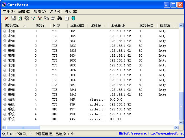 5.可以显示连接的状态,例如“正在监听”,“等待关闭”等。