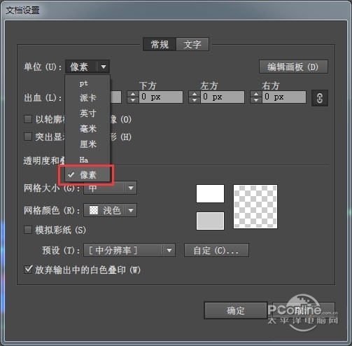 第六步:在弹出的选项中,按下图设置,重点是单位选像素