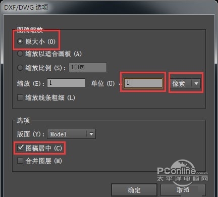 在单位这里选择像素 点击确定。如果你打开dxf文件时已经设置了为像素,此步可跳过。
