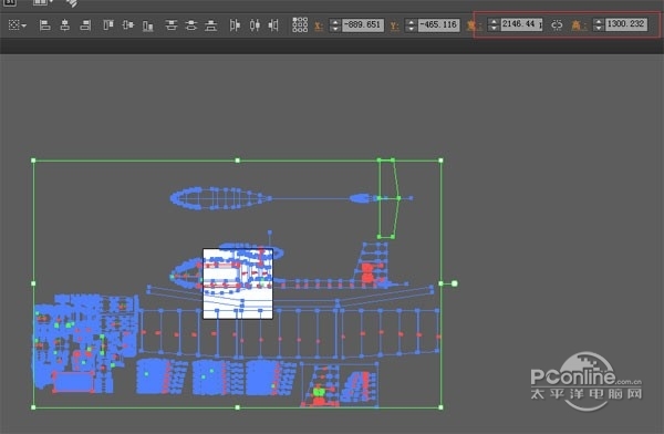 第七步:此时你按键盘上的Ctrl+A 全选,看右上角的长宽尺寸是否和你CAD图里的一样。如果不一样自行修改。