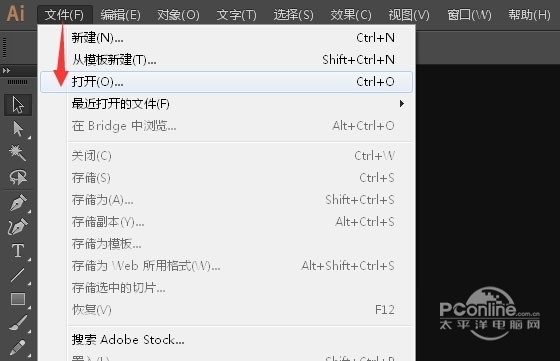 第四步:打开Illustrator软件,点击“文件"---"打开"