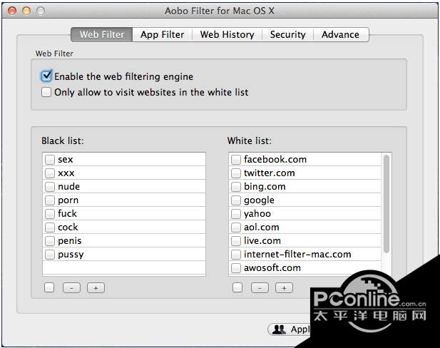 Aobo Filter For Mac Professional是广告过滤频道下深受用户的软件,太平洋下载中心提供Aobo Filter For Mac Professional官方下载。互联网过滤用于Mac OS X 奥博过滤器适用于Mac 块网站自动过滤黑名单中的网站在浏览器中加载。 浏览器会显示一个页面与服务器的问题,而不是告诉你的网页已被封锁。 用户将不会注意到一个过滤器在Mac上工作。 阻止任何游戏或应用程式 与奥博的Mac筛选 ,你可以很容易地阻止运行某些游戏或应用程式,将它们添加到应用程序筛选器列表。 此应用程序过滤功能,可以帮助您过滤不适当的游戏和应用,保护Mac用户。 从任何浏览器的记录网站访问量 奥博过滤器适用于Mac会抓住任何网站访问,即使在私人浏览模式启用。 本网站记录的特点是有利于检查不当的网站,然后网站地址添加到黑名单,过滤工作更加方便。 您的Mac上轻松地向任何用户应用过滤器 你并不需要将其安装到你的Mac上,让每一个帐户过滤器工作时,所有的Mac用户。 一个简单的点击,你可以很容易地申请奥博过滤器适用于Mac只有当前用户或所有用户。 它保证了自动运行和过滤,当用户登录到Mac。 Aobo Filter For Mac Professional截图1 满庭芳 秦观063杜甫:古柏行AoboFilterForMacProfessional免费版,AoboFilterForMacProfessional免费版下载,AoboFilterForMacProfessional2.1There is absolutely (in fact) no (every) reason for us to believe (accept / resist / reject) that… |