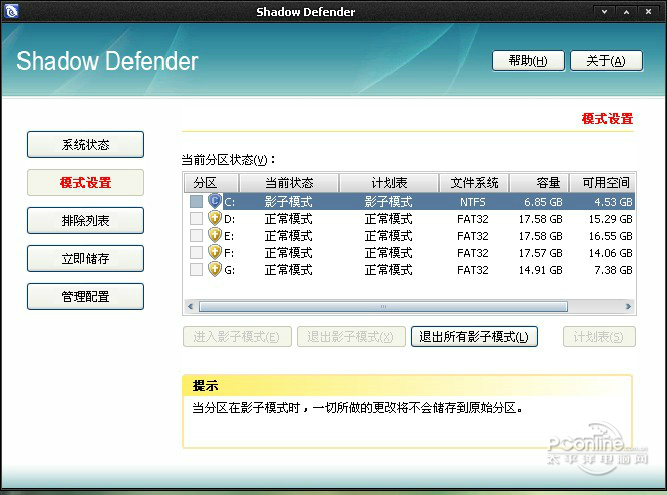 影子卫士Shadow Defender 1.4.0.680中文版免费迫万紫千红不画蛇添足及待31. 我轻轻拾起一片枫叶,那红彤彤的叶面上有着清晰的时脉,边缘上长出均匀的锯齿,样子虽然像伸开五指的小手,但颜色却像一团燃烧的火焰。47.在人类生活的方方面面 in all aspects of human life218.在天愿作比翼鸟,在地愿为连理枝。《长恨歌》 影子卫士Shadow Defender是一款小巧却功能强大的保护程序,支持多分区,支持转储,支持排除。虽然大家都熟悉Powershadow(影子系统),但也不妨试试影子卫士Shadow Defender这个软件!影子卫士中文版有着漂亮的界面和直观的设置选项,桌面上的提示标签很漂亮,还可以随时移动并且可以此唤出主界面,给人感觉超棒。影子卫士中文版特别是在转储和排除方面胜人一筹!本站提供影子卫士下载。  影子卫士中文版软件截图1 功能介绍: 1.防止所有病毒和恶意软件。 2.安全地浏览互联网并消除不必要的痕迹。 3.保护您的隐私。 4.消除系统停机时间和维护成本。 5.重新启动以将系统恢复到原始状态。 安装步骤: 1、影子卫士下载后,单击【下一步】。  影子卫士最新版软件截图2 2、勾选【我接受协议】后,单击【下一步】。  软件截图3 3、单击【下一步】。  软件截图4 4、选择开始菜单文件夹后,单击【下一步】。  软件截图5 5、选择附加任务后,单击【下一步】。  软件截图6 6、确认安装信息无误后,单击【安装】。  软件截图7 7、安装完毕。  软件截图8 使用方法: 一、启动影子保护 1、运行软件,选择C盘,单击【进入影子模式】,在弹出窗口中选择【重启后继续影子模式】。  软件截图9 2、重启后影子模式继续,C盘出于影子保护之下,不会记录任何更改和设置。 二、文件排除功能的使用 1、运行软件,如果我们希望桌面能够继续保存文件,那么久单击【添加文件夹】,吧桌面目录添加到【排除列表】中。 2、这样即使重启电脑,桌面上的文件仍会完好无损。 更新日志: 影子卫士v1.4.0.672 - 2017年11月11日 新增功能:支持Windows 10 Fall Creators更新。 新增功能:将加密算法更改为AES。 修正:一些小错误。 常见问答: 一、影子卫士的主要作用在哪些方面? 1.保持系统不受恶意活动和不必要的更改。 2.在一个安全的环境中测试软件和游戏设施。 3.防止不必要的更改,分享用户(适用于工作场所和教育机构)。 二、SD和Sandboxie的区别在哪里? 1. 从保护层面来看,Sandboxie能细致到对某一具体程序/文档进行封锁保护。相比下,SD更注重从整体保证系统免收侵害,一旦开启部署至少牵涉一个硬盘分区。 2. 因为SD属于整体性保护,所以操作简单,没有太多复杂的设置,对使用者的要求比较低,适用面广一些;Sandboxie适合有专门需求的用户使用,比如同时能运行多个沙盘、跳转程序时需选择从沙盘或系统中启动等,设置项也稍复杂一些。 3. Sandboxie中的沙盘载入和退出是不需要重启电脑的;而因为SD的工作原理不同于前者,当关闭部署于系统盘的影子模式时,我们需要重启一次。 32. 失恋后不要放弃对爱情的追求,失恋后就想独身一辈子,这是不现实的。没有爱情的人生是不完美的,应该继续去叩响爱情的大门。