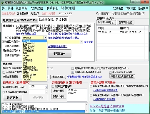 易好用ip自动更换软件 2.6.3.0 正式版免费深碧急中生智空如洗更半夜37. 月亮西斜了,一副意兴阑珊的样子。有鸟啼,粗嘎嘶哑,是乌鸦。那月亮被它一声声叫得更黯淡了。江岸上,想已霜结干草。夜空里,星子亦如清霜,一粒粒冷艳凄绝。早睡早起有益于健康。282.月上柳梢头,人约黄昏后。《生查子》 你还在寻找换ip软件?亿通网络自动换ip软件支持adsl宽带换IP,电信3G换IP,联通3G换IP,路由器自动换IP。本软件绿色安全且免费,如果你也需要,那就不要错过啦!本站提供换ip软件免费版。使用该软件必须你的电脑和宽带支持,你可以使用下面的几种方式配合本软件IP就可以自动换IP: 1.适合adsl拨号宽带自动换IP 2.电信3G、4G无线宽带自动换IP 3.联通3G、4G无线宽带自动换IP 4.移动3G、4G无线宽带自动换IP 5.适合于路由器有线无线wifi上网方式自动换IP(需要软件上指定的路由器型号及路由器内部软件版本,并且必须是拨号上网动态ip) 6.可设置间隔时间自动更换IP地址 7.重复IP可以自动重新更换 8.可以供第三方程序调用换IP 9.可以监控第三方网页功能,出现关键词时自动换ip 易好用ip自动更换软件 2.5.8.2 正式版 更新内容 修复定时更换功能以及增加自动登录路由器功能  更新日志: