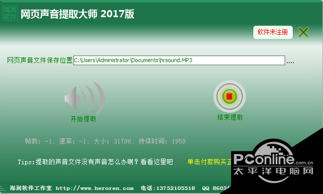 平时在看电影的时候,突然觉得一个插曲很好听、某一段视频的声音特别精彩,但是网上又找不到音源怎么办? 视频声音提取精灵V7.1,可以帮助用户方便的提取各种视频中的声音,而且它还支持将提取后的文件直接转换为MP3格式。 结合海润工作室其他视频音频软件,可以定制打造您特有的音视频文件!我们只做 简单 、专业、 实用的软件! 联系QQ: 860348659 电话:13752105518 网页声音提取大师截图1 网页声音提取大师截图2