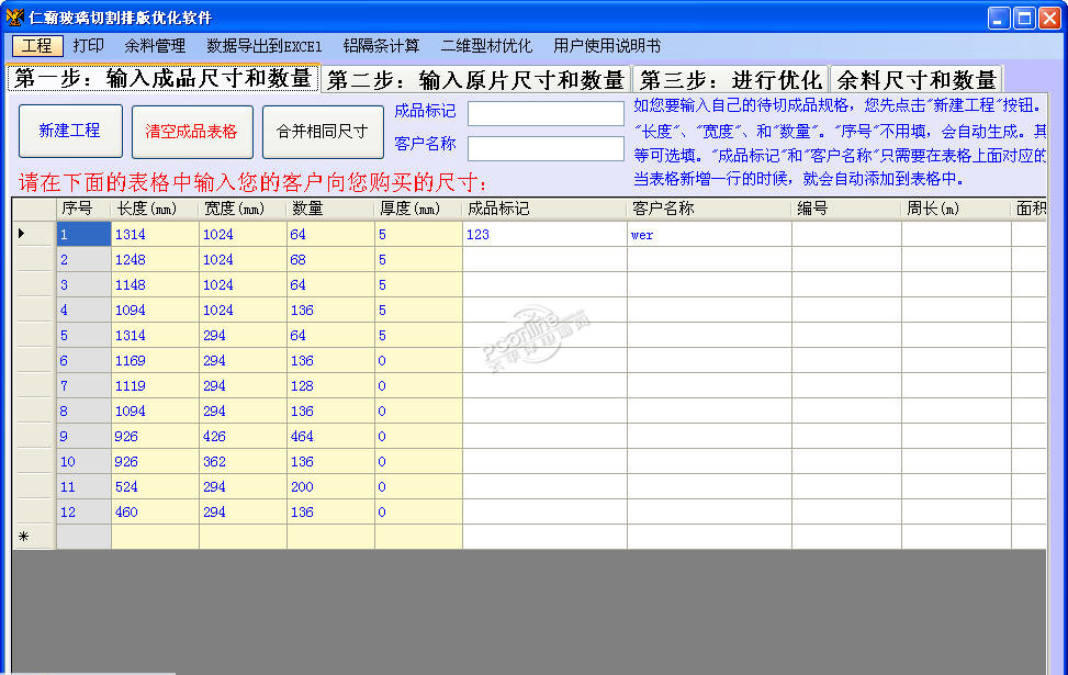 仁霸玻璃优化软件 8.2.1 正式版共享胸无点天高云淡舍死忘生墨2. 秋叶随风而落,那曾经高挂枝头的骄傲已随风而去,当夕阳慈祥地抚摸它时那擦肩而过的伤痛也已变得柔和。也许它的随风起舞的日子还有荣耀,再也无法找回,但留下的却是另一种美丽,那是根植大地的永恒,是更深刻的一种价值与意义。我想邀请你下周六重阳节和我们一起去参观附近的敬老院。56.有则改之,无则加勉。 仁霸玻璃优化软件是目前市面上优化率最好优化速度最快的一款软件,界面设计友好,操作简单,及其容易上手。 太平洋下载中心提示:该软件需要 net framework v2.0 环境支持。 仁霸玻璃优化软件具有以下特点: 1.优化率高:根据不同的成品尺寸和玻璃原片使用情况而不同,一般都在95%以上,成品种类和玻璃原片多时大部分能达到97%以上,是目前市面上优化率最高的软件。并支持多种成品(最多500种)和多种玻璃原片同时进行排版,以得到更高的优化率。 2.玻璃排版切割合理:每种切割方案绝对是通刀。排版方案合理,余料可利用程度高。 3.可以同时选用多种不同的原片规格优化,例如 2400x1900、2200x1500、2200x1600等 并且系统要求输入玻璃原片的数量,在优化过程中,如果该原片的数量使用完,系统就不会再用该原片进行优化. 4.鈠版完成后可以自动算出可重新利用的余料,并且可以导入到余料库存,以备下次优化可以将余料加入计算。 5.导入导出功能:方便从Excel以及Word中复制数据直接粘贴到软件中,方便操作,减少错误。 6.錠塞冲减功能:优化完成后可以把用掉的玻璃从库存里面减掉。 方便用户查看库存。 7.支持手动掰片:用户可自由设定最小掰片距离。 8.支持需要对纹路产品的排版:排版后成品和原片的纹路保持一致。 9.口锯缝的设置:自由设定刀口锯缝,优化时考虑切割一刀的损耗量 10.磨边量设置:可以自由确定是否磨边以及磨边量的大小。 11.玻璃标记功能:在玻璃切割方案上标出玻璃代号标记 ,便于分拣。 12.耠啻易用的标签设计打印功能:用户根据自己的需求自由设定标签,并进行打印。 13.自动计算玻璃铝隔条数据,并可导入到二维型材优化系统就行优化排版切割。  仁霸玻璃优化软件截图1