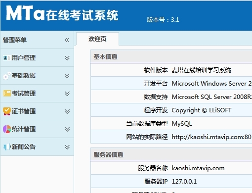 麦塔在线考试系统 免费版 3.8.2收费彻夜雪上加霜狂欢亲密无间43. 看重别人,尊重别人,就能把对手变成自己的朋友,就能化害为益,变坏为好,就能把遭遇变为幸运,把坎坷变为通途。34.为社会做贡献 make contributions to the society贺铸326.试问闲愁都几许?一川烟草,满城风絮,梅子黄时雨。《青玉案》 麦塔在线考试系统目标是通过使用网络技术,来实现考试去纸化、试卷自动组、成绩自动判、信息自动记录及自动统计的功能,进而达到降低出试卷时间,免除试卷的印刷、分发试卷的时间、批改试卷的时间和人力成本的目的。 基于Java技术平台,跨平台部署,全平台覆盖在线考试系统可以在Linux、Windows、Unix平台下顺利的安装运行。因为在线考试系统采用了跨平台的开发语言JAVA和跨平台的数据库MySQL。基于跨平台的技术,在线考试系统可以为企业节省大量版权费用。同时,基于Linux平台,可以部署各种强大的开源软件来配合在线考试系统产品,保证在线考试系统产品在大数据量、大并发情况下的稳定性。支持pc端考试,同时支持手机移动端在线考试。一键安装 ,绿色便捷我们针对Windows操作系统开发了一键安装版。只需要下载至电脑,一键即可完成Java环境和MySQL数据库的启动,并且将系统部署至本机,将本机作为考试系统的服务器运行。 完整的支54. 你是我的,谁都抢不走,我就是这么霸道,我是你的,谁都领不走,我就是这么死心眼。持时下主流浏览器现在,您不必担心因为用户浏览器的不同而导致用户体验不一致,麦塔在线考试系统完全采用B/S架构的技术,我们支持绝大多数主流的浏览器,如:IE,火狐,Chrome,360,猎豹等,这一点超越了其他产品。 稳定安全的系统架构系统使用了稳定性极强的Java企业级框架,采用的MySQL数据库可以保证数据的稳定,实现在不同的硬件环境下稳定运行。能有效的防止外部病毒数据的攻击,内部数据通过多种备份方式,并且通过严格、细致的权限控制,保证考试系统的安全。数据备份和快速恢复系统内的数据永远是最重要的。我们提供了简单易用的数据备份和恢复功能,您不仅可以快速备份系统内的数据,还可以选择性的备份、恢复磁盘上的多媒体文件麦塔在线考试系统 3.7 正式版 更新内容麦塔在线考试系统增加移动端考试功能,可以手机端在线考试,练习系统优化了随机组卷中,试题分类可以多个选问题梳理二级管理员权限划分问题 麦塔在线考试系统 3.7.1 更新内容 修复3.7版本的bug问题  去年紫陌青门,今宵雨云魂。断送一生憔悴,只消几个黄昏。沈吟放拨插弦中,整顿衣裳起敛容。麦塔在线考试系统,考试系统As an American is always striving to change his lot, he never fully identifies with any group. |