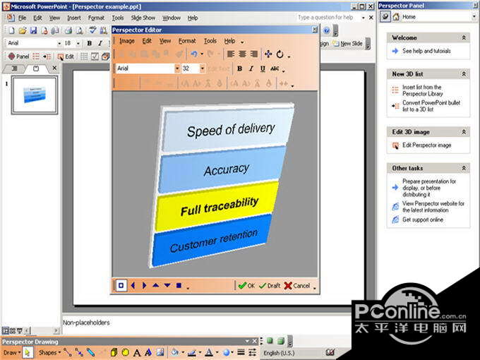 Perspector Professional Edition是图像处理频道下深受用户的软件,太平洋下载中心提供Perspector Professional Edition官方下载。 是一个功能强大的三维特效制作工具,可以为幻灯片添加各种三维特效。它使用方便,可以轻松地为PowerPoint的幻灯片添加三维图像。 Perspector Professional Edition截图1 疏 影 彭元逊诚知此恨人人有,贫贱夫妻百事哀。PerspectorProfessionalEdition免费版,PerspectorProfessionalEdition免费版下载,PerspectorProfessionalEdition4.2.1正式版It gives rise to (lead to / bring / create) a host of problems (consequences). |