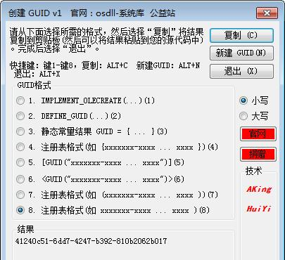 创建GUID工具 1.0 免费版免费慢风声鹤唳条斯江水茫茫理36. 用心人生看到的世界是一片阳光,消极人生看到的世界是一片黑暗;用心人生感受到的生活是无比快乐,消极人生心里感觉到的仅是一丝丝悲凉。我真诚地希望你能加入我们。177.举杯邀明月,对影成三人。《月下独酌》 创建GUID工具是一款能够帮助用户在制作软件的时候添加GUID从提高软件的保密性,GUID拥有绝对的唯一性,利用软件能够快速生成GUID,保证软件的唯一性,有需要的可以下载使用。  基本简介 全局唯一标识符(GUID,Globally Unique Identifier)是一种由算法生成的二进制长度为128位的数字标识符。GUID主要用于在拥有多20. 现在每天醒来睁开眼见到的是墙上你那似阳光般的笑靥,好想哪天醒来时,第一眼所触及的是真正的你那似花般甜甜的睡容……个节点、多台计算机的网络或系统中。在理想情况下,任何计算机和计算机集群都不会生成两个相同的GUID。GUID 的总数达到了2^128(3.4×10^38)个,所以随机生成两个相同GUID的可能性非常小,但并不为0。所以,用于生成GUID的算法通常都加入了非随机的参数(如时间),以保证这种重复的情况不会发生。 GUID一词有时也专指微软对UUID标准的实现。 在 Windows 平台上,GUID 广泛应用于微软的产品中,用于标识如注册表项、类及接口标识、数据库、系统目录等对象。 使用方法 一、选择GUID格式。 二、点击复制即可复制到源代码中使用。 别馆寒砧,孤城画角,一派秋声入寥廓。东归燕从海上去,南来雁向沙头落。楚台风,庚楼月,宛如昨。洞庭连天九嶷高,蛟龙出没猩鼯号。创建GUID工具,创建GUID工具下载,安装制作,编程开发In all the discussion and debate over…, one important (basic) fact is generally overlooked (neglected). |
