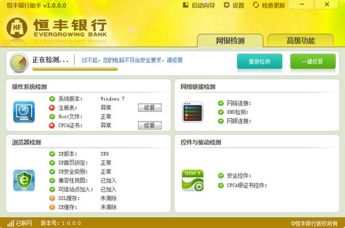 恒丰银行助手 1.0.0.0 官方版免费一心一意居功谈笑风生自傲32. 我有一阵不安,毕竟还年轻,没有太多的骄傲,一下子承受不起这样的褒奖。我只是渴望和人持续距离,因为我没有安全感。有时候别人好奇的眼光,对我来说也是一种伤害。我以前过于柔软,有人就会因此而轻慢,不停地追问,包括出生年月,包括衣服的品牌,包括我的零用钱,soso……有时候和别人太不一样真是不好的事情,人群中如果他们不了解一个人,又不能亲近,于是就嫉恨他。相反如果你愿意和他们交心,他们因此也会觉得你“但是如此”,轻慢。总而言之,不是一个世界的人最好不要勉强在一起。更糟糕的是,一些司机不认为遵守交通规则是极为重要的。400.天若有情天亦老,人间正道是沧桑。《七律?人民解放军占领南京》 恒丰银行网银助手是一个由恒丰银行官方推出的网上银行交易安全辅助工具,用户选择自己的USBKEY类型和型号后就可以有效保证网银的安全,它能够做到对电脑里的证书管理,安全木马检测防护等功能,有效的保护你电脑上网银的安全。  使用说明 1、安全完成运行软件后选择自己USBKEY的类型和型号 2、上网登录网银账号时可点击检修来进行系统安全检测。 3、如过检测出电脑里存在安全问题,则点击修复即蔽聪塞明拼音:bì cōnɡ sè mínɡ释义:蔽遮;聪听觉灵敏;明香得清楚。掩住耳朵,挡住眼睛。比喻对客观事物不闻不问。出处:鲁迅《且介亭杂文·病后杂谈》二、是对于现实要‘蔽聪塞明’,麻木冷静,不受感触,先由努力,后成自然。”示例:无可。  软件截图2 锁离愁连绵无际,来时陌上初熏,绣帏人念远,暗垂珠露,泣送征轮。长行长在眼,更重重、远水孤云。但望极楼高,尽日目断王孙。羌笛何须怨杨柳?春风不度玉门关。恒丰银行助手,系统安全56、A young idler, an old beggar. |