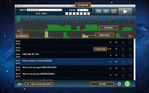 天天复读机 Mac版 3.1.0 正式版免费眉开黄雀草木苍翠在后眼笑12. 当心空无一物,它便无边无涯。树在,山在,大地在,岁月在,我在,你还要怎样更好的世界。28. On behalf of our school, I would like to express our warm welcome to you. (2014.陕西)罗贯中《三国演义》355.滚滚长江东逝水,浪花淘尽英雄。是非成败转头空。青山依旧在,几度夕阳红。(卷首语) 天天复读机 Mac版是Mac os平台上的一款学习软件,是让学习英语的学者,可以练习听力,听起来的声音非常的清晰,特殊的记忆方法更容易记住。 基本简介 天天复读机是iOS 天天复读机软件的 Mac 版(您可以下载 iOS 免费版进行试用),是大家在利用 Mac 学习英语中不可缺少的工具。  游戏特色 1、提供了多种方便快捷的播放模式: 1)可视化的波形指示,让播放时间点变得生动形象。能过星星标记,让定位播放的起始点更加容易。 2)多种复读模式,提供了 连续、1~n遍的复读方式。还提供了听写模式, 边听边写,听写结果与原文比照,是认真学习、不放过细节的最佳手段。同时通过动手的过程让学习更加有趣和深入。  软件截图2 3)为了增加学习难度,播放时可加上各种场景的背景音,让学习者在各种环境噪音练习听力,更具实用性。 4) 增强的跟读功能,跟读方式将对听者跟读声音进行录音和识别。简便的方法是可以用这种功能来控制播放,复读机读一句,您跟读一句结束后,自动播放下一句,免去手工模式不断点击屏幕和普通复读模式的比较机械的时间间隔。如果打开回放功能,还可以再复述一遍您跟读的声音。 5) 口语跟读练习模式,通过原始声音波形、跟读声音波形以及在线语音识别帮助提高口语能力及准确度,并增加学习的趣味性。 6) 可对一个目录下标记了星号、对错的语句进行单独保存,并根据这些标记过的语句升成新的声音文件,以适应对好题和错题的保存及播放需要;  软件截图3 2、提供定时、波形、按需多种录音模式,录音直接存储成 mp3,在录音时可以随手记录摘要内容。 3、更多人性化设计 1)提供星号间暂停、重播等重播模式; 2)对播放次数进行跟踪,提供星形、对、错标记功能,记17. 爱,是世界上最美好的东西,即使它伤了你的心,也要笑着忘却,然后开始下一段旅程。录难度、已会和不会的内容,自动记录每个文件的上次学习的终点,方便持久学习; 3)提供悬浮窗口的功能,悬浮最小化后不影响其他软件的使用。  软件截图4 4)提供在第二次复读时变速复读的功能,您可以减慢速度进行播放。 4、增强的编辑功能 根据声音播放的静音点,自动生成播放时间点,通过点击和划切完成语句的增加、编辑和合并, 并提供手录入和文本导入正文的手段。 青玉案 辛弃疾有耳莫洗颍川水,有口莫食首阳蕨。天天复读机,Mac版,其他教学It is possible that fees paid by movie studios for screenplays will decrease in the future relative to those for book rights. |