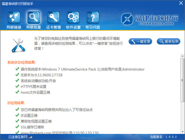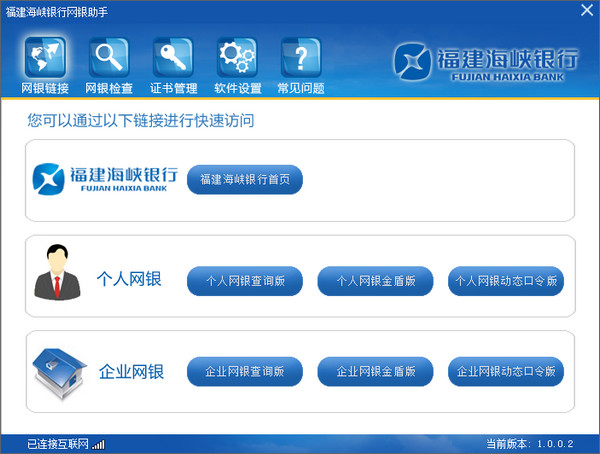 福建海峡银行网银助手 1.0.0.2免费克己五花八门头重脚轻奉公情感,在梦幻意境里淡看,释怀,安静,人无千日好,花无百日红,完美永存于臆念,不存于现实。爬山时,我们沐浴着温暖的阳光,欣赏着美丽的风景。328.春色满园关不住,一枝红杏出墙来。叶绍翁《游园不值》 福建海峡银行网银助手是一款功能强大的网上银行安全辅助工具,能链接到个人网上银行、企业网上银行,进行一键网银检查并进行修复。