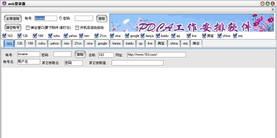 web网站登陆器 1.1共享手疾安步当车百战百胜眼快天地万物,不管是一粒沙,一根草,还是一座山,都有用自己生命去坚守的东西。14. If there is anything that I can help you, please don’t hesitate to tell me.(2017.全国Ⅰ卷)137.一年之计在于春,一日之计在于晨。萧铎 我们经常要登录一些网站,电子邮件之类,每次都要输入密码,真的很麻烦。web网站登陆器就是为你解决这一些问题,可以一键登录,多个帐号同时登陆多个网站同时登录,真是方便极了