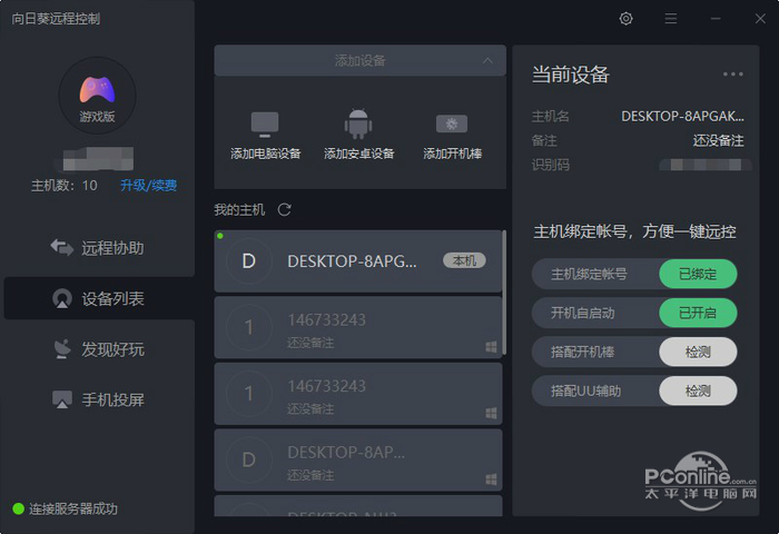 | 介绍 | 向日葵远程控制 For Windows 12.0.0.39380 正式版免费手足情深贪生怕婉转悦耳死26. 想来,生命之宴也是如此吧?我对生命中的涓滴每有一分赏悦。上帝总赐下万道流泉。我为其中的某一个音符凝神他总赐下整匹的音乐如素锦。生命的厚礼,原来只赏赐给那些肯于一尝的人。敬盼早日回复。362.好事不出门,恶事传千里。 向日葵远程控制软件是由上海贝锐科技自主研制的一款远程控制软件,提供控制电脑与控制手机服务。向日葵远程控制软件拥有10年远程控制经验和专业的开发与技术团队,更支持Windows、Linux、Mac、Android、iOS多平台使用。为千万个人用户提供远程服务,为企业用户提供安全、稳定、高效的定制化解决方案。 ![]() 软件截图 ![]() 软件截图2 ![]() 软件截图3 ![]() 软件截图4 ![]() 软件截图5 ![]() 软件截图6 软件特色: 1. 软硬结合:提供控制电脑与控制手机服务,搭配智能硬件,实现远程开机与控制一体化。 2. 流畅无阻:配置华东、华南、华北BGP跨线路云服务器及H.264智能视频模式网络稳定,远程流畅。 3. 安全加密:基于RSA/AES非对称加密技术,保证用户资料、会话等安全如初。 专属客服:IT专家一对一的技术支持,7*24小时随时候命,提供电话及远程协助,为您高效解决问题。 ![]() 软件截图 ![]() 软件截图 1、 远控电脑 无论何时何地,都能自由随心访问和管理自己的电脑,哪怕无人值守,设备无网,照样搞定。 屏幕白板:在远程桌面直接涂画、写字、用图形圈选,方便演示。 黑屏:支持开启和关闭黑屏模式,防止他人看到自己的操作,保护隐私。 桌面录像:支持桌面录像,录像可保存在客户端主机或云端,随时翻查。 同步剪贴:支持复制粘贴,犹如在现场操作。 远程开机:结合开机棒,实现远程开机与远程操作一体化。随开随关、定时开关,远程开启世界各个角落的电脑。 无网远控:搭配向日葵控控,即使主机出于网络局限或无网状态,也可突破限制,为主机无网远控操作带来了更多的可能与前所未有的体验。 远程文件:支持远程文件的删除、下载、重命名等操作,支持文件双向传输,支持断点续传。 CMD/SSH:自定义你的常用命令,为你保留历史输入命令记录。 视频监控:支持多摄像头查看,支持麦克风声音,支持多人同时查看摄像头。 远程管理与诊断:随时随地管理远程主机,查看系统信息和硬件信息等系统性能诊断,查看时间,查看进程,查看系统服务,本地用户和组,共享资源和环境变量,远程应用管理,内存、CPU等敏感信息报警提醒,对远程主机的一切尽收眼底。 2、 远程控制手机 无论你用的是苹果、安卓还是电脑,均能远控安卓设备。 远程观看手机屏幕:免ROOT远程观看,有手机即可使用本地与远程画面同步。 远程查看手机摄像头:免ROOT远程查看,灵活切换前后摄像头,全方位了解手机镜头的另一面。 远程操作手机桌面:原生滑屏手势操作,交互难度更低,简洁界面,无边界限的全屏远程操作让你身临其境。 3、 远程游戏 专属游戏服务器,保证稳定、流畅的远控体验;手机端远控,让你的电脑游戏也能在手机端畅快操作;专属游戏键盘、支持自定义按键、支持长按交互等,助你登上王者之巅。 4、 手机投屏 将手机屏幕共享到电脑桌面,不局限在局域网内投屏。 安装步骤: 1、双击向日葵远程控制软件安装包 ![]() 软件截图 2、进行自定义安装,选择要安装的路径 ![]() 软件截图 3、完成安装 使用方法: 如何发起远程协助:远程协助功能,无需登录帐号即可发起远控。 这里可查看本机的识别码和验证码,发送本机识别码给伙伴即可实现远控本机; 也可以输入伙伴的识别码和验证码,去远控伙伴的电脑。 ![]() 软件截图 如何添加设备: 1、添加电脑设备 点击“添加电脑设备”,在被控端电脑下载并安装向日葵,登录与本机相同的帐号密码,即可将主机添加至帐号下。 ![]() 软件截图 2、添加安卓设备点击“添加安卓设备”,可通过扫描二维码下载安卓客户端,安装后登录与本机相同的帐号密码,即可将主机添加至帐号下。 ![]() 软件截图 3.添加开机棒点击“添加开机棒”,可输入开机棒的SN码和设备名称,32. 如果你失恋了,只需要记住,既然失恋,就一定有一环出了问题。不论是谁的错,心里要铭记一句话,我有爱她的权利,只是,她没有爱我的义务。点击“立即添加”,即可将开机棒添加至帐号下使用。 ![]() 软件截图 更新日志: 更新日志: 【新增】远程桌面支持文件夹映射 【新增】远控窗口支持快捷键操作 【新增】支持识别码远程文件 【新增】游戏版远控支持最高144帧 【新增】支持远控IOS客户端 【新增】共享主机支持到期提醒 【新增】识别码支持备注 【优化】优化远程桌面菜单 【优化】优化远程桌面诊断信息 【修复】修复部分bug 常见问答: 一、向日葵远程控制软件如何手机投屏? Step 01: 打开电脑上的向日葵X,点击菜单栏中的【手机投屏】功能。从界面提示中,我们可以了解到要想实现投屏,离不开这个二维码。 ![]() Step 02: 打开手机端向日葵APP,点击底部菜单栏的【发现】按钮,找到【手机投屏】。 点击【扫码投屏】按钮,扫描向日葵X上的二维码,即可进入投屏模式。 ![]() 软件截图2 Step 03: 投屏成功之后,小伙伴就可以在电脑上看到手机上所做的操作,投屏界面会随着手机界面自动调整,如自动横竖屏等等。 当你需要停止投屏时,回到向日葵客户端界面点击红色【停止】按钮,即可结束投屏
