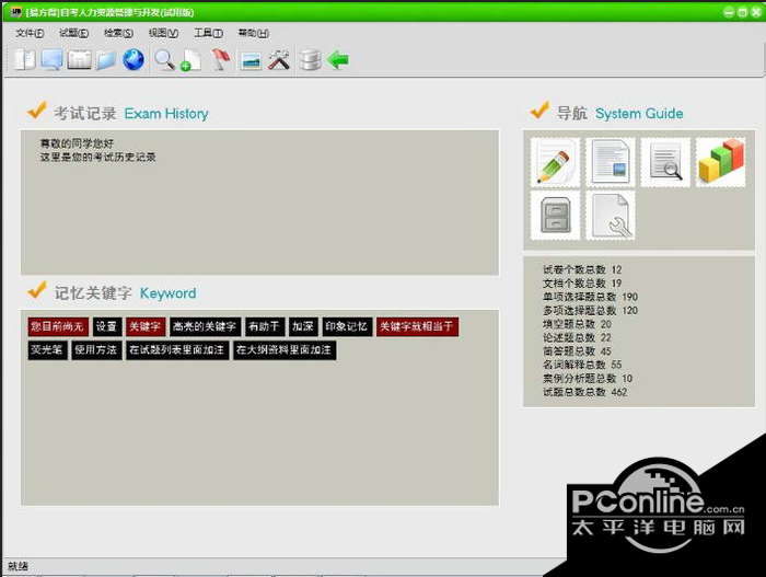 人力资源管理与开发考试系统 2.1 正式版免费威风积少成多千军易得,一将难求凛凛生命经过生死,便懂得了世事无常;缘分经过聚散,便沉淀了真情实意;爱情经过岁月,便领悟到情深缘浅。天下无不散之宴席,相聚欢喜,别离伤感。人与人之间很多的时候,只是共同走过一段路程,在下一个路口又匆匆分散。我感觉我会是你们公司所需要的人。265.人面不知何处去,桃花依旧笑春风。崔护《题都城南庄》 人力资源管理与开发考试系统是考试系统频道下深受用户的软件,太平洋下载中心提供人力资源管理与开发考试系统官方下载。 欢迎您使用易方得考试系统,该软件是一款考试复习辅助软件,实现试卷电子化,无纸化人机对话的方式进行考试或复习,提高考生最大化学习效率以及易用性。该系统平台只针对于个人考生而量身定做。可离线使用,并实现自动评分,记录考试结果,考生作答,错误次数功考生纠正学习。除此之外,该系统平台还实现资料库查询,浏览、个人复习文档浏览、试题查询、甚至是 试题关键字查询等强大功能。另外我们还为考试提供自定义考试模板样式,试题分数修改等多项功能。对于该平台的详细功能,您可以从本站下载试用版。 紧扣大纲—所有习题均根据考试大纲要求精心设计。 知识全面—囊括了考试要求的所有知识点。 界面逼真—完全按照考试要求进行全真模拟。 离线使用—不用互联网即可使用功能强大—在功能使用上誓与同类行业软件试比高!!! 任何模式的考试和测验均都支持逐个和列表模式答题,加深对试题的记忆与理解。,可大大提高该科目复习效率,更多的功能欢迎各界考生前来使用。 专业的考生,其中包括历届试题、测试卷和考试大纲等等试卷个数总数 12 文档个数总数 19 单项选择题总数 190 多项选择题总数 120 填空题总数 20 论述题总数 22 简答题总数 45 名词解释总数 55 案例分析题总数 10 试题总数总数 462 人力资源管理与开发考试系统截图1