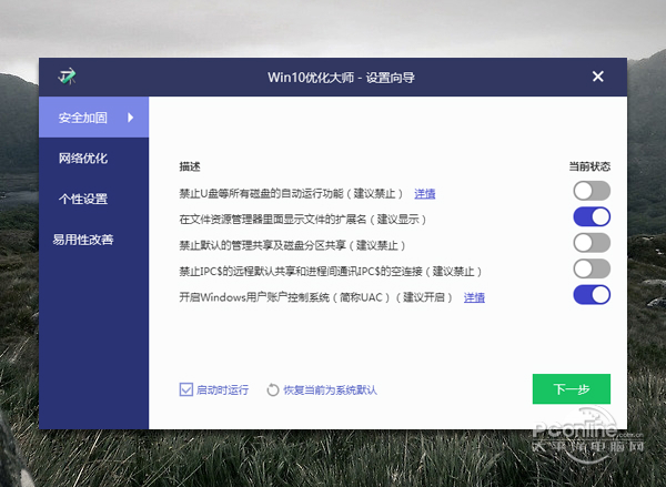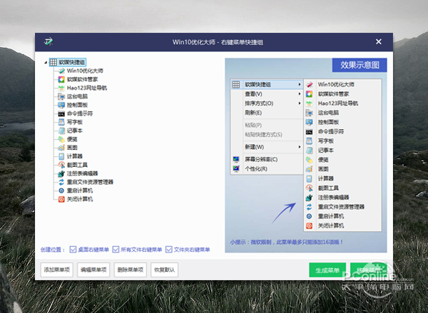 Win10优化大师 1.0.0.7 正式版免费满过五关,斩六将昂首挺胸城风雨37. 只要你心中还有信念,你就会一次次从失败的阴霾中走出来,迎接你的必然是成功。记住:态度决定一切。成功,其实就在你心中。谢谢你的关心。38.言必信,行必果。 Win10优化大师官方最新版(软媒Windows10优化大师)面向Win10操作系统提供的优化软件,提供常用系统功能的开关、应用缓存清理、软件管家、Win+X快捷菜单管理、右键菜单快捷组功能、桌面显示图标控制等功能。太平洋下载中心为您提供win10优化大师官方下载。  win10优化大师官方下载截图1 功能介绍: 1、常用开关:显示已知文件扩展名、设置Windows窗口动画……众多易用性设置不必到处寻找,在这里一次搞定!  win10优化大师官方下载截图2 2、应用缓存清理:彻底清扫磁贴应用(Windows Store应用)缓存,为系统瘦身,让Win10更快速! 3、软件管家:轻松收藏、安装自己喜欢的软件和系统主题,100%纯净、100%屏蔽插件、100%无骚扰。 4、Win + X快捷菜单管理:在开始按钮上单击右键或者按下Win+X快捷键可弹出菜单,这个菜单终于可以自定义啦! 5、右键菜单快捷组功能:只需要在桌面上单击右键,就可以打开常用程序、进行关机重启操作了!  win10优化大师官方下载截图3 6、桌面显示图标控制:控制面板、IE浏览器、回收站……桌面常用图标,来去自如,都听我的! 7、设置向导:用最短的时间,将Win 10调节至最佳状态,操作电脑得心应手!  win10优化大师官方下载截图4 安装步骤: 从本站下载win10优化大师安装包,解压后打开文件夹 双击启动exe程序,进入安装指引界面 选择目标文件夹,勾选同意协议,点击立即安装  win10优化大师官方下载截图5 使用方法: 1、找到桌面图标,双击打开 2、在设置向导的安全加固里面,选择下一步 3、在网络优化里面可以设置浏览器主页,选择搜索引擎,设置完成点击下一步 4、设置向导的个性设置里面,可以设置描述文件,然后选择下一步 5、在易用性改善里面选择下一步 6、可以选择添加任务栏,选择完成 7、在主页里面选择软件管家,可以下载电脑软件,也可以对软件进行升级卸载等操作 8、选择主页里面的应用缓存清理,可以扫描应用垃圾,然后进行清理 9、在右键菜单快捷组里面,可以生成菜单和移除菜单 10、点击桌面显示图标,可以设置在电脑桌面上显示软件程序的图标 11、在win+x菜单里面,可以对系统菜单进行设置,点击保存,也可以恢复默认,回到最开始的状态 12、点击守护,看到魔方正在守护您的电脑,可以进行一些列的设置,也可以停用实时守护 在常用开关里面可以对文件资源进行管理,查看任务栏,可以进行个性化设置 垂首丧气拼音:chuí shǒu sàng qì释义:形容因失败或不顺利而情绪低落、萎蘼不振的样子。同垂头丧气”。出处:《水浒传》第九五回乔道清生平逞弄神通,今日垂首丧气,正是总教掬尽三江水,难洗今朝一面羞。”示例:[舟次]连不得志于有司,~,无以娱其老亲。★清·周亮工《送汪舟次游庐山序》 常见问答: 1、win10用优化大师清理注册表之后不开机,登录画面一直在转圈怎么办? 答:直接按电脑电源重启,马上按F8,等出现Windows2000高级选项菜单,选项: 安全模式 最近一次的正确配置 这2种方式试一试 (安全模式:是启动Windows2000的最低配置的设备驱动程序及服务。) 2、win10使用优化大师优化后无法使用开机图片解锁和pin码解锁怎么办? 答:设置好PIN码后锁定计算机,然后使用PIN码登录成功后(联网状态下),下次开机即可使用PIN码登录。 注意必须是联网。 更新日志: 新增:支持Win10 Build 10061、10074、10102版本 新增:常用开关-开启开始菜单和任务栏Aero效果(仅支持10074或以后) 新增:常用开关-禁用任务栏和开始菜单透明(仅支持10056或之后) 新增:常用开关-使用经典任务栏时钟(仅支持10056或之后) 新增:常用开关-隐藏文件资源管理器左侧导航栏中的U盘、光盘等移动设备 改进:常用开关-将部分选项归为个性化分类中 改进:右键菜单快捷组-在文件夹右键菜单中创建快捷组时,会导致开始菜单的文档按钮功能错误,因此暂时不在此处创建菜单 修正:稳定性-修改Win+X菜单时可能发生的崩溃问题 win10优化大师官方最新版专为Win10操作系统提供,win10优化大师提供了常用系统应用缓存清理、桌面显示图标控制等功能。用户只需在桌面上点击鼠标右键,就可以打开常用程序或是关机重启等操作。太平洋下载中心为您提供win10优化大师下载。 苏幕遮 范仲淹075李颀:古从军行win10优化大师,win10优化大师官方最新版,win10优化大师下载,win10优化大师官方下载47、East or west, home is the best. |