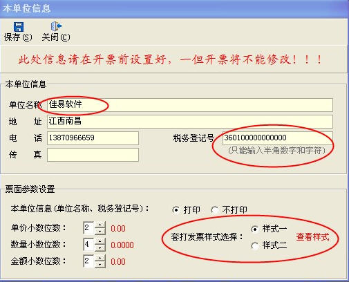 4.开票本单位信息(单位名称和税务登记号)是否打印的设定,单位定制发票上已经印有本单位信息的,可以不再打印本单位信息。