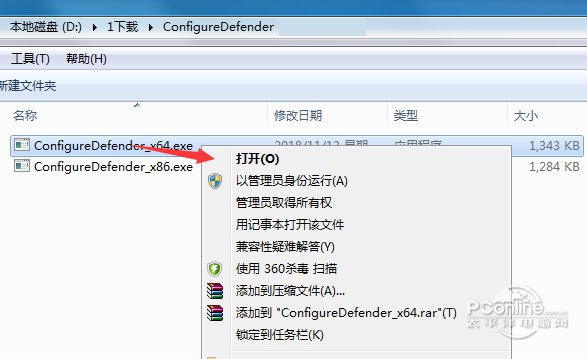 3、由于本软件是绿色免安装软件,根据我们电脑相应的系统位数选择相应的程序打开软件  ConfigureDefender