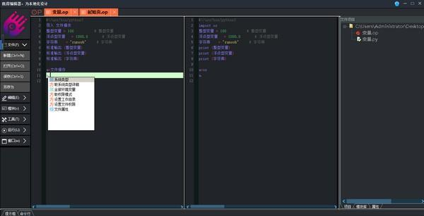 既得Python编辑器 2019.12.17 正式版免费百鸟肝胆相照鸣有机可乘春66. 如果我能拥有这份荣幸,我愿终身陪伴着你,一年四季陪伴着你。春天,我陪你轻轻漫步在盛开的百花之间;夏天,我陪你奔跑在欢乐的小河之畔;秋天,我陪你倘徉在火红的枫林之下;冬天,我陪你围坐在炽热的火炉旁边。53. I really appreciate what you’ve done for my family and me.260.当局者迷,旁观者清。《新唐书?元行冲传》 既得Python编辑器是全中文python编辑器,本软件在编程的过程中实时输出Python源代码,可以参考中英对照,目前仅支持中到英,后续将支持英到中。  软件介绍 左边为中文代码输入框,右会实时输出对应的python源码。  软件截图28. 简约不是少,而是没有多余,足够也不是多,而是刚好你在。2 本软件属于Python编辑器一种,高度封装,属于全中文输入编辑器,所以需要自己制作模块库。 本软件高度贴合python 程序的初衷(个人意见): 1.本地化编程语言 2.解决大量库命令记忆 3.降低python学习时间 4.降低python学习难度 5.附和python多平台性 更新日志 2019-12-17: 内测开启 燕鸿过后莺归去,细算浮生千万绪。长于春梦几多时,散似秋云无觅处。须臾静扫众峰出,仰见突兀撑青空。既得Python编辑器,既得Python编辑器下载,编程工具,编程开发24、Experience is the best teacher. |