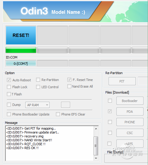 软件特色: Odin3刷机工具(odin刷机工具)为刷手机(固件)rom电脑端、写rom的软件,使用Odin3刷机工具(odin刷机工具)不用担心手机变砖,即使不小心刷错了固件,也可以通过再次刷新来解决。 使用方法: 1、刷机前请先安装三星手机usb驱动;  软件截图2 2、下载之后,请将odin3刷机工具解压,打开应用程序  软件截图3 3、手机完全关机,待手机完全关机后,三星手机同时按住音量键减+home键+开机键,然后自动进入刷机模式,也叫“挖煤模式”然后用usb数据线连接电脑,连接成功后Odin3如下图  软件截图4 4、在Odin3点击pda选择你下载好的刷机包,这时候会卡一会,稍等出现蓝色框的文字,然后点击start开始刷机,刷机完毕后会自动重启  软件截图5 常见问答: 1、Odin刷机后,进度框长时间显示RESET!没有显示PASS!,如下图所示:  软件截图6 请您重新运行360一键root工具,在配置Odin程序过程时,Option的复选框中,不要勾选 F.Reset Time这一项。 2、Odin刷机后,进度框显示FAIL!,如下图所示怎么办?  软件截图7 2.1如果您的电脑自动弹出过安装三星驱动的界面,如下图所示:  软件截图8 请您重新运行360一键root工具,当您的电脑自动弹出安装三星驱动程序的界面时,请您按照下面的步骤操作。 1) 关闭您的电脑上的360手机助手。 2) 等待您的电脑上的三星驱动程序安装完成。 3) 继续按照360一键root工具的提示界面进行操作,配置Odin程序并刷recovery分区。 2.2如果您的电脑没有自动弹出过安装三星驱动的界面,请您按照如下步骤检查Odin刷机失败的问题。 1) 请检查在Odin刷机过程中,您的手机是否处于Odin模式。 2) 请检查在Odin刷机过程中,Odin程序是否始终保持和您的手机的连接。如果保持连接,则Odin界面中ID:COM下面的矩形框框是蓝色的。 3) 请检查在配置Odin程序时,您是否勾选了PDA并正确选择了您的电脑桌面的recovery.tar文件。 Odin3是三星手机专用刷机工具,而如果选择三星线刷的用户,几乎95%以上的人都选择使用odin3来刷机,自从用了Odin3,妈妈再也不用担心我的手机变砖头了,只需要再刷新就可以了。 燕雁无心,太湖西畔随云去。数峰清苦,商略黄昏雨。三夜频梦君,情亲见君意。odin3,手机管理,刷机工具Private restaurants serve gourmet food for $70 per person; incentives boosted agricultural production 25 percent and industrial output 80 percent in just three years; farmers are encouraged to raise as much as they can on their own plots, and some become almost rich in the process.(注意本句中分号的使用) |