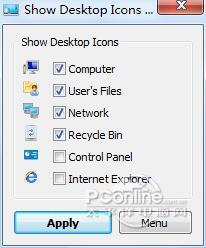 Show Desktop Icon 1.1 正式版免费姹紫嫣红昂百花盛开首嘶鸣22. 如果说爱是三月淅沥的春风,感恩就是小草吐露的新绿;如果说爱是初夏生机的日光,感恩就是材木成长的浓绿;如果说爱是冬日洁白的雪花,感恩就是颗粒饱满的小麦。10 节假日活动52.道不同,不相为谋。 Show Desktop Icon是桌面工具频道下深受用户的软件,太平洋下载中心提供Show Desktop Icon官方下载。 Show Desktop Icon最新版是一款桌面图标软件。Show Desktop Icon最新版可以自定义将IE浏览器、常用文件、网络应用、回收站等图标添加到桌面或者隐藏,并且可以通过软件的搜索功能快速地搜索到收录的应用程序。Show Desktop Icon不仅仅是一款桌面图标快捷工具,它还可以清除系统的图标缓存,并且在之后使用图标时,从软件缓存中获取。  Show Desktop Icon