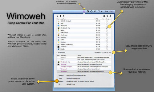 Wimoweh for mac 1.1.68 正式版免费麻雀水泄不刻舟求剑通虽小,五脏俱全17. 无论是什么样的感情,能够遇见,就是一种缘分,即使最后没有达成你心里想要的结果,也不要过于自责,因为在这个过程中,或多或少都曾有过快乐在你身边围绕,感情中没有太多的对错之分,能够彼此理解,彼此懂得就是莫大的幸运。我对美国人民有了很好的第一印象。陈子昂144.前不见古人,后不见来者。念天地之悠悠,独怆然而涕下。《登幽州台歌》 Wimoweh for mac是一款设计新颖的防睡眠工具,她不光能防止Mac自动进入休眠状态,也能够单独指定其他应用程序来阻碍系统休眠,并且可以完整的显示出当前有哪些程序正在阻止系统进入休眠状态。  Mac用户们会发现,Mac OS系统进入睡眠状态之后软件都会停止工作,而有的时候我们是不希望系统睡眠的。例如下载大文件的时候,这个时候Wimoweh就是一个很有用的工具了,能够单独指定其他应用程序来阻碍系统休眠,来实现你的目的。  软件截图2 10. 要相信,有些人总会被相遇,点燃你温柔的爱意;要相信,有些人终须别离,当你们已经在彼此生命里完成成长的仪式。命运真的是注定的吗?根登卓玛说:只有过去是注定的,爱,是重生的力量。