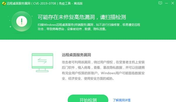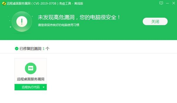360远程桌面服务漏洞免疫工具,能够在离线情况下检测修复漏洞,扫描Windows远程桌面服务终端服务漏洞,如不进行扫攻击,导致病毒感染,设备被劫持,数据、隐私泄露。  软件相关 远程桌面漏洞 危险等级:高危 危险表现:未经用户授权情况下,植入恶意文件,计算机被“完全控制” 影响范围:绝大部分Windows操作系统 官方介绍: CVE-2019-0708、 CVE-2019-1181、 CVE-2019-1182 漏洞信息:俗称3389服务存在严重安全漏洞。此漏洞利用预身份验证,无需用户授权,成功利用此漏洞的攻击者可以在受害主机上执行恶意攻击行为,包括安装后门,查看、篡改隐私数据,创建拥有完全用户权限的新账户。 远程桌面服务漏洞攻击者可利用该漏洞,绕过用户授权,在受害者主机上安装后门软件,植入病毒,查看、篡改隐私数据,并可以创建拥有完全用户权限的新账户。 Windows用户可能面临数据安全、经济安全、使用安全方面的威胁。  软件截图2