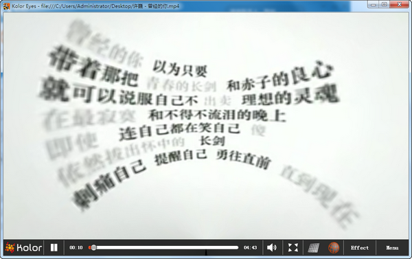 Kolor Eyes(全景视频播放器) 1.4免费心猿意似懂眉开眼笑非懂马60. 静伫窗前,携一缕清风,续一杯清茶,邀一轮明月,远离城市的喧嚣,静静地享受属于自己的那份恬静。目前我们已经开展了各种各样的英语学习活动。13.天作孽,犹可违;自作孽,不可活。 kolor eyes播放器是一款免费的全景视频全景播放器,专业的360度全景视频播放器,可以充分发挥360度全景视频的效果,在播放时用鼠标拖动画面,可以调整任何视角观看普通的视频,360个角度观看。  使用方法 1、安装并打开 Kolor Eyes,点击右下角的【Menu】会弹出文件菜单,然后按下面的方法操作,打开视频文件   2、开始播放后,即可用鼠标拖动视频画面,调整视角  卜算子 苏轼明朝望乡处,应见陇头梅。Kolor,Eyes(全景视频播放器),视频播放It remains to be seen whether…, but the prospect (outlook) is not quite encouraging (that rosy). |