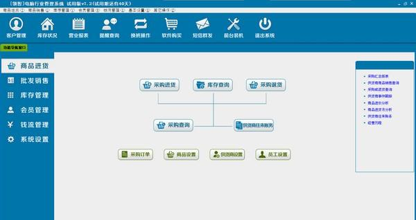 领智电脑销售管理系统 9.4 官方版共享冷冷清清笨鸟先飞山穷水尽11. 可怜的浮士德,学究天人,却不知道生命是一桩太好的东西,好到你无论选择什么方式度过,都像是一种浪费。57. I have such a good command of English that I am elected as assistant to my English teacher.(2015.陕西)36.君子坦荡荡,小人长戚戚。 领智电脑销售管理系统是一款针对电脑行业的销售管理系统,具有商品批发销售、库存管理、账单管理以及员工管理等功能,能够帮助用户提高工作效率。  基本简介 领智电脑行业销售管理系统是一款针对商业类行业的电脑用品销售管理系统,其中包含商品批发销售、前台POS零售、库存管理系统、应收应付款管理、员工提成等子模块。软件界面设计简洁,美观,用户上手极易,领智电脑行业销售管理系统广泛适用于商业销售企业,用于商业销售管理、库存管理、财务管理、客户管理、员工管理等场合,是企业进行信息化管理的强大工具。 使用方法 1.登录系统 进入软件登录窗口,输入用户名密码(系统默认用户名为admin,密码为空),单击登录进入软件主界面。  软件截图2 2.进入软件主界面 领智软件包含商品进货、批发销售、库存17. 一生情,蜿蜒成潺潺的溪水,向着爱海奔腾而去;一生爱,辗转成绵延的相思雨,踏落一路红尘的情趣;我的爱总是为了你,把你留在我香甜的梦境里!管理、会员管理、钱流管理、系统设置几个主要功能模块。  软件截图3 3.商品信息设置 在系统设置中设置商品、客户、供货商、员工、操作员、仓库等信息。  软件截图4 苔枝缀玉,有翠禽小小,枝上同宿。客里相逢,篱角黄昏,无言自倚修竹。他乡生白发,旧国见青山。领智电脑销售管理系统,领智电脑销售管理系统下载,进销存管理,行业软件70、You cannot have your cake and eat it. |