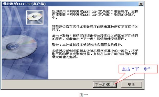明华澳汉电子钥匙客户端工具CSP 2.10 用户版免费富丽堂皇马多如牛毛到成功14. 朋友是什么?朋友是快乐日子里的一把吉它,尽情地为你弹奏生活的愉悦;朋友是忧伤日子里的一股春风,轻轻地为你拂去心中的愁云;朋友是成功道路上的一位良师,热情的将你引向阳光的地带;朋友是失败苦闷中的一盏明灯,默默地为你驱赶心灵的阴霾。谢谢你的关心。389.我自横刀向天笑,去留肝胆两昆仑。谭嗣同《狱中题壁》 明华澳汉电子钥匙客户端工具CSP是一款明华澳汉电子钥匙EKey管理器用户工具软件,在系统默认安装中,数据库的驱动程序及相关的数据库环境都会被安装被正确配置好的。但由于Windows操作系统安装版本的不同,或有时用户因其它原因手工对系统的 ODBC作过改动,导致数据库驱动程序损坏或数据库环境不能正确建立,此时,证书管理器安装后将不能正确的运行。 使用方法: 下载压包RAR文件,解压后运行明华用户工具安装程序.exe,按照提示下一步安装即可,安装完成后,还须下载JITCertToolkits.exe和JXCA.cer这两个文件,才能正常使用,然后分别安装这两个文件.具体安装方法见江西CA根证书及控件安装程序下载里. 安装流程: 1、安装“明华澳汉KEY CSP(管理员端)”驱动程序 ⑴ 双击安装程序“setup_manager_csp” ,如“图一”所示。  图一 ⑵ 点击“下一步”,按默认选项进行操作,如图二、图三、图四、图五、图六。  软件截图2  软件截图3  软件截图4  软件截图5 ⑶ 点击“图六”中的“完成”,管理员端的驱动程序安装完毕。  软件截图6 2、安装 “明华澳汉KEY CSP(客户端)”驱动程序 ⑴ 双击安装程序“Setup_Cli35. 往事再美好,都已经尘封,人生,可以痛苦,更要懂得追求快乐。在这个世间,有很多东西是免费的。比如阳光,爱情,友情,梦想。所以,我们应当持有一颗平常心,珍惜自己的过去,满意自己的现在,乐观自己的未来,那你就是最幸福的人。ent_Csp”如“图一”。  软件截图7 ⑵ 点击“下一步”,按默认选项进行操作如图二、图三、图四、图五、图六  软件截图8  软件截图9  软件截图10  软件截图11 ⑶ 点击“图六”中的“完成”,客户端的驱动程序安装完毕。  软件截图12 注: ① 管理端与客户端驱动程序安装完毕后,在您的计算机桌面上将出现两个图标, 如下图所示:其一为“KEYMan_csp.lnk”表示管理端,其二为“KEYClient_csp.lnk”表示客户端。  软件截图13 ② 管理端的作用是为USB KEY进行初始化,设置管理员密码和用户密码,解锁用户密码和导入证书; 注:客户端的作用是用以监控USB KEY的使用,导入证书和修改用户密码。 ③ 新的USB KEY必须进行初始化,且进行必要的密码设置。 夜游宫 周邦彦借问汉宫谁得似?可怜飞燕倚新妆。明华澳汉电子钥匙客户端工具CSP,系统安全In consumer - driven industries, innovation, product differentiation, and creativity are crucial to lasting success. |