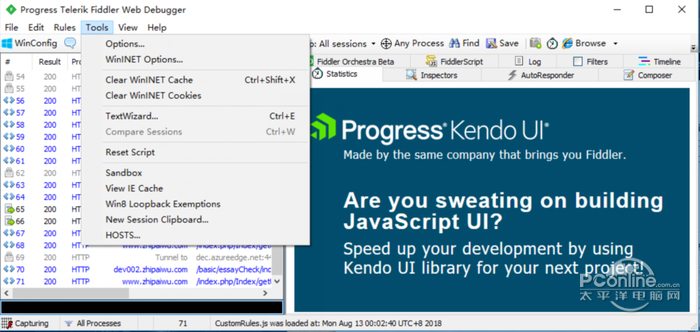| 介绍 | Fiddler 5.0.20204.45441 中文汉化版免费急来抱佛脚花红愁眉苦脸柳绿2. 朋友,你读懂亲情了吗?亲情是寒冷时父亲为你披上的一件外套,是深夜里母亲为你冲的一杯牛奶;亲情是孩子柔嫩的小手为父亲擦去额上的汗珠,是母亲疲惫时递上茶水时的体贴。我建议有关部门采取一些有效措施改善现状。岑参198.山回路转不见君,雪上空留马行处。《白雪歌送武判官归京》 fiddler(fiddler中文版)是一个http协议Web调试代理工具。fiddler能够记录并检查所有你的电脑和互联网之间的http通讯,设置断点查看所有的“进出”Fiddler的数据(指html,cookie,css,js等文件,这些都可以让你胡乱修改的意思)。Fiddler(fiddler中文版)要比其他的网络调试器要更加简单,因为它不仅仅可以帮助用户提供暴露http通讯,还提供了一个友好的用户格式。Fiddler包含了一个强大的基于事件脚本的子系统,并且能使用.net语言进行扩展,适用于:开发环境的host配置;前后端接口调试;线上bugfix;性能分析和优化等等。本站提供fiddler下载。 ![]() Fiddler下载截图1 毁瓦画墁拼音:huǐ wǎ huà màn释义:打碎屋瓦,涂灭已画好的田地界线。比喻一种无益不害的行为。出处:《孟子·滕文公下》[孟子]曰‘有人于此,毁瓦画墁,其志将以求食也,则子食之乎?’”赵岐注孟子言人但破碎瓦,画地则复墁灭之,此无用之为也,然而其意反欲求食,则子食乎?”示例:将其藉兹遣日,如~者所为耶?★章炳麟《五无论》 更新日志: v5.0 1、SampleRules.js 现在有了窗口风格的线条结尾,可以方便地在记事本中编辑 2、Windows 10 固定安装问题 3、改进更新 软件特色: 1.fiddler4支持断点调试技术。 2.通过显示所有的Http通讯,可以统计出你的内容总共被请求了多少次,以及多少字节被转化了。 3.用户可以使用.net下的任何语言来编写Fiddler扩展。 ![]() Fiddler下载截图2 功能介绍: 1、Web会话操作 轻松编辑Web会话:只需设置一个断点即可暂停会话处理并允许更改请求/响应。撰写您自己的HTTP请求并通过Fiddler运行它们。 2、性能测试 提琴手可以让您一目了然地看到“总页重”,HTTP缓存和压缩。用“标记任何大于25kb的未压缩响应”等规则隔离性能瓶颈。 3、可定制的免费工具 受益于丰富的可扩展性模型,从简单的FiddlerScript到可以使用任何.NET语言开发的强大扩展。 4、安全测试 解密HTTPS流量并使用中间人解密技术显示和修改Web应用程序请求。配置Fiddler以解密所有流量,或仅解密特定会话。 5、HTTP / HTTPS流量记录 使用Fiddler记录您的计算机和Internet之间的所有HTTP(S)流量。调试几乎所有支持代理的应用程序(IE,Chrome,Safari,Firefox,Opera等)的流量。 6、Web调试 调试来自PC,Mac或Linux系统和移动(iOS和Android)设备的流量。确保在客户端和服务器之间传输正确的Cookie,标题和缓存指令。支持任何框架,包括.NET,Java,Ruby等。 ![]() fiddler软件截图3 使用方法: 首先,打开Fiddler,在上方菜单栏的【 Tools】中找到【 Fiddler Options】,点击打开。 然后,在弹出的界面中,将上方选项卡切换到【Connections】选项,然后点击勾选下方的【Allow romote computers to connect】,然后点击【OK】按钮确定即可。点击快捷键【win+R】,会弹出本电脑运行窗口。在运行窗口中输入【cmd】,点击确定,打开本电脑命令行窗口。 然后,在弹出的命令行窗口中输入【ipconfig】,找到本机的ip地址。 随后,打开android设备【设置】中的【WLAN】,打开想要连接的网络,点击选择【修改网络】。在弹出【网络设置】窗口中,勾选【显示高级选项】。在高级选项中,将【代理】选择为【手动】,在【代理服务器主机名】后面的输入框中输入电脑的ip地址,在【代理服务器端口】后面的输入框输入【8888】,保存即可。 最后,打开android设备中的浏览器,访问任意一个页面,在【fiddler】中就可以看到该页面完成的请求和响应数据了。 ![]() fiddler官方下载软件截图4 ![]() 软件截图5 安装步骤: 在本网站将fiddler4下载后,右键点击选择打开,软件运行环境为win7/8/10。 常见问答: fiddler怎么抓包? 1. 开发fiddler之后默认情况下就是抓包状态,可以查看界面左下角显示capturing,如果没有显示,单击此处可以开始抓包。 2. 如果访问的网站是https网站,则需要通过Tools - Fiddler Options - Https - Decrypt Http Traffic来设置将https解密 ![]() fiddler软件截图6 3. 通过浏览器发送请求。(在windows平台上此处并不限于浏览器,只要程序是通过winhttp或者wininet发送请求都可以被监测到) 4. 在收到回复后回到fiddler查看抓包内容。 关键字查找 1. 通过Ctr+F调出查找对话框,在全局查找关键字 2. 在选中特定请求之后可以在Inspecters - Raw中分别在特定的请求或回复中查找内容 3. 如果回复被压缩过,通过单击提示按钮可以将内容解压缩 ![]() fiddler软件截图7 自动回复 请求自动回复应用也比较广,例如将其他机器抓包倒入自动回复,然后再本机回放重现问题;或者动态调试过程中不希望有些请求去调用服务器,而在自动回复中配制或者进行相应的更改直接查看效果。 1. 切换到自动回复(AutoResponder)标签页 2. 选中Enable automatic responses 3. 点击Import按钮导入抓包的saz文件 4. 可以通过默认Url或者通过Rule Editor来修改请求匹配规则 ![]() fiddler软件截图8 断点设置 1. 通过Rules - Automatic Breakpoints - Before Requests/After Response设置断点。 ![]() fiddler软件截图9 2. 断点在请求或者回复受到后触发,可以动态的修改请求或者回复来进行不