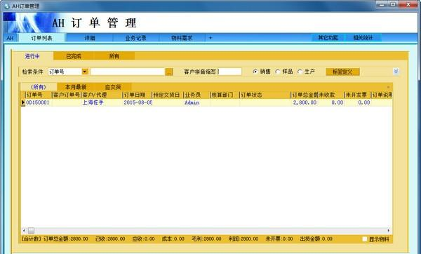 AH订单管理系统 4.31 官方版免费锦上添一日三绝无仅有秋花14. 朋友是什么?朋友是快乐日子里的一把吉它,尽情地为你弹奏生活的愉悦;朋友是忧伤日子里的一股春风,轻轻地为你拂去心中的愁云;朋友是成功道路上的一位良师,热情的将你引向阳光的地带;朋友是失败苦闷中的一盏明灯,默默地为你驱赶心灵的阴霾。21. The job was hard, which made me so tired that I almost quit half way.262.溪云初起日沉阁,山雨欲来风满楼。许浑《咸阳城东楼》 AH订单管理系统是一款可以适用于各行业的订单管理软件,具有订单列表、业务记录以及物料需求等功能,可以帮助用户更方便更直观的管理订单,AH订单管理系统是企业销售的好帮手。  基本简介 AH订单管理软件是一款傻瓜型的订单管理软件,该订单管理软件界面新颖友好,直观简洁,任意条件模糊查找,多种灵活的自定义功能使之能适用于各行各业的订单管理需要,如果您在寻找企业订单管理软15. 人世间有百媚千红,唯独你是我情之所钟。件下载,建议您在此下载AH订单管理软件,佐手软件将会是您企业销售订单管理和采购订单管理的最好的帮手。 功能介绍 订单列表  软件截图2 详细  软件截图3 业务记录  软件截图4 物料需求  软件截图5 蝶恋花 晏几道200韩□:同题仙游观AH订单管理系统,AH订单管理系统下载,进销存管理,行业软件34.An idle youth,a needy age. 少壮不努力,老大徒伤悲。 |