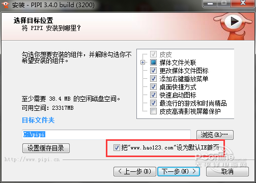 皮皮播放器(PIPI) 3.3.8 官方正式版免费寥若惊弓之鸟自高自大晨星17. 人生象是一碗茶,需细细品味;人生象是一味药,需认真煎熬;人生象是一盘棋,需仔细斟酌。49. Nowadays, both teachers and parents worry a great deal about the student’s using the Internet.63.知人者智,自知者明;胜人者有力,自胜者强。 皮皮播放器(PIPI)/皮皮播放器是全球互联网上最清晰流畅的在线影视播放平台,安装皮皮高清影视(pipi)即可免费观看多达三万部高清电影、电视剧,且每天更新超过一百部。皮皮高清影视使用皮皮播放、皮皮网提供最新的免费电影在线观看、免费电影下载观看,中国最高清的免费电影网-皮皮网。  软件特色: 1、皮皮播放器完全免费,下载即可体验 2、自主点播观看,简单易用轻松上手 3、高清超清资源,专享影院级视听效果 4、震撼大图推荐影片,海量影视剧看不完 5、边下边看,观影过程流畅不卡 6、自动播放下一集,记录上次观看时间点 7、皮皮播放器视频可下载,一键珍藏随身携带 8、先进的缓存技术,保护您的硬盘不受伤害  软件截图2 安装步骤: 1、打开皮皮播放器安装包,点击下一步  软件截图3 2、点击浏览可以更改安装路径,这里注意要取消勾选,然后点击下一步  软件截图4 3、取消勾选点击下一步,即安装完成  软件截图5 使用方法: 皮皮播放器如何下载视频? 打开任意一个视频,皮皮播放器默认开始缓存,当缓存结束时,视频即下载完毕  软件截图6  软件截图7 皮皮播放器如何删除缓存视频? 1、点击下载按钮  软件截图8 2、右键要删除的视频,点击删除  软件截图9 常见问答: 皮皮播放器播放影片时有图像无声音? 首先,请确认系统是否设置了静音,系统其它软件是否声音正常;再确认皮皮是否设置了静音。 一般在windows7与vista下面由于声音独占会导致皮皮出现此现象,解决办法如下: 打开皮皮→右键→播放器设置→播放模式→“DirectShow音频模式,”选择“扬声器……”(一般就在 System Default 后面一项),重启播放器,即可。 皮皮播放器有声音无图像? 打开播放器→右键→播放器设置→播放模式→DirectShow视频模式,选择“VMR7(无渲染模式)”→重启播放器,即可。 HD高清影片播放问题(如黑屏不播放、花屏、卡屏等)都可用此办法解决。 皮皮播放器声音与画面不同步? 打开播放器→右键→音视频同步,即可进行手动同步。