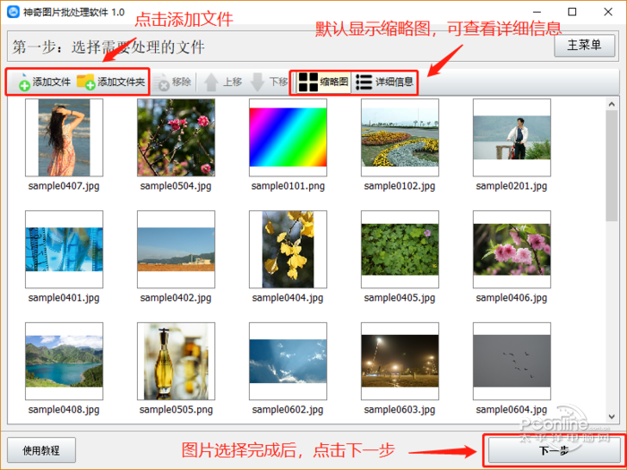 至此,图片处理已经全部完成! 第一步:导入图片 点击‘添加文件’或者‘添加文件夹’导入需要处理的图片。如图: