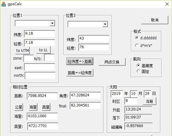 磁偏角计算软件(gpscalc) 2.1.1 绿色免费版免费穿云绝无仅有而过海誓山盟28. 如果不爱你能够让你幸福,那么我就只是喜爱你。”42. 满足需求 satisfy/ meet the needs of…109.若要人不知,除非己莫为。《汉?枚乘?上书谏吴王》 磁偏角计算软件(gpscalc)是一款用于磁偏角计算的工具,根据距离和方向,可以精准的计算出经纬度数据,可以计算磁偏角数据,软件中还包含多款附属工具,本软件完全免费。  基本简介 在我国除部分磁力异常的地方外,一般磁偏角都是西偏。磁偏角还是不断有规律变化的,地图上的磁偏角只是测图时的磁偏角(磁北比真北偏左,加上磁偏角;磁北比真北偏右,减去磁偏角;在我国一般是加上)。使用地图本身所注的磁偏角要注意出版年限,地图太老误差较大。 磁偏角怎么计算 地球的磁极不是在北极点和南极点上,而是有比较大的偏移。另外,磁极每时每刻都在不停的运动着。再有,太阳风也影响了地磁场。因此,地磁场不是一个规则的形状。 通过表格可以查到地球上几个测量点的磁偏角等数据,然后利用公式计算出任意地方的磁偏角。磁偏角除了和经纬度相关,还和时间、高程相关。 主要功能 1、经纬度与UTM坐标的转换 2、两点距离和方向的计算,包括大圆(最短)和固定(航行)距离 3、根据距离和方向计算目标点 4、国内县级以上单位经纬度 5、日出日落时间计算 6、磁偏角计算  软件截图2 附属工具 c2g.pl 将城市坐标文件(citys.txt)转换为kml文件(citys.kml) g2c.pl 将kml文件(由c2g生11. 不从泥泞不堪的小道上迈步,就踏不上铺满鲜花的大路。成的)转换成数据文件 upd.pl 将数据文件(由g2c生成的)转换成城市坐标文件(citys.txt.new) 情愁忧患都说尽,烟柳浮云始作闲。树色随山迥,河声入海遥。磁偏角计算软件(gpscalc),磁偏角计算软件(gpscalc)下载,其它工具,应用工具The argument ignores the factors - such as initiative, creativity, technical skills, and business judgment - that may be more important than the choice of medium in determining success in photography. |