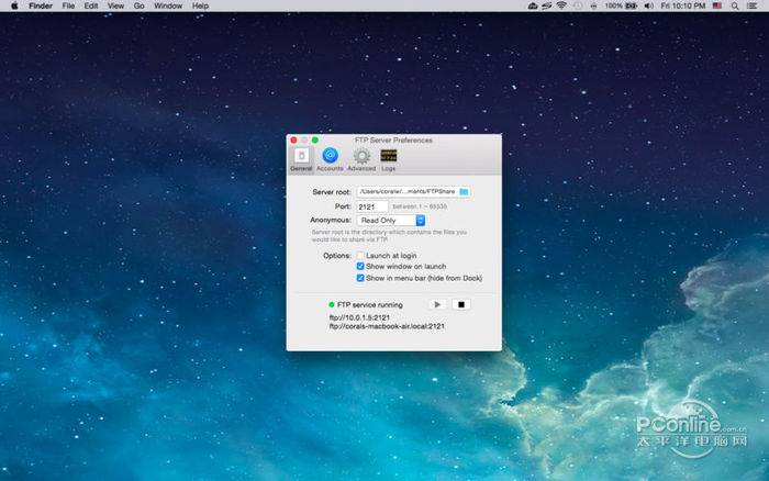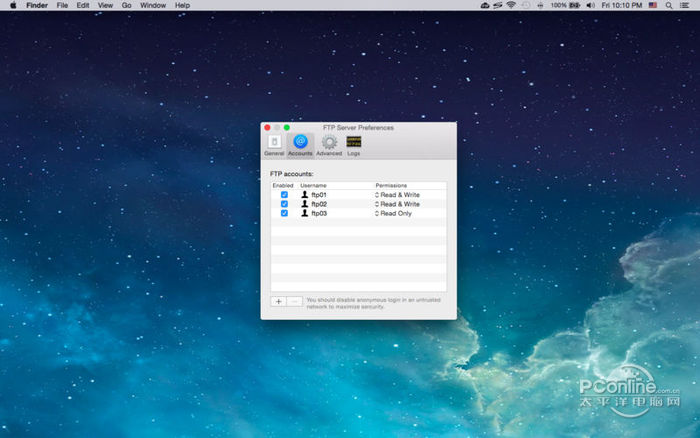 ? 添加“开机时启动 FTP 服务”选项(FTP 服务器 首选项 -> 高级) ? 修复日志显示问题  FTP 服务器 Mac版 截图2