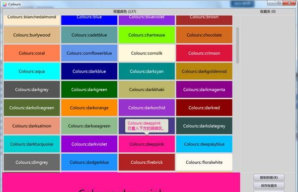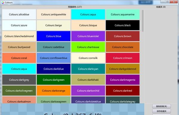 Colours(十六进制颜色代码表) 1.0.0 免费版免费孤云目瞪口转危为安呆野鹤35. 始终觉得,能够和自己亲近的人不多。喜欢这样的人,什么也不问,就这样安静地呆着。不会对你妄加揣测,也不会在背后说三道四。我一向就有这样的觉悟,但是自从和一个男生交往过以后就加倍肯定了自己的想法。29. In 2008, you will see Beijing as beautiful as a garden, with cleaner water and clearer sky.365.冤家宜解不宜结,各自回头看后头。《古今小说》 SwingColours是一款十六进制颜色代码查询器,可以在SwingColours中查询各种颜色的十六进制代码,支持复制使用,还支持对颜色进行编辑,包括调整亮度、饱和度等操作。  软件特色 SwingColours是程序员在选择颜色和书写颜色代码时的好帮手。 可将某个颜色的代码复制到系统剪贴板,以便粘贴到源代码中。 支持生成、收藏、编辑和助记任何颜色,收藏夹可保存和加载。  软件截图2 软件介绍 操作界面分为四个区域: 左上最大的区域为预置区,列举了Colours类的所有静态颜色值。鼠标左键点击某个颜色,可将其置入下方的编辑区,供编辑、复制或收藏。 右上为收藏区,列举当前收藏的所有颜色。本程序最多可收藏41. 分手后不要回头,就算那段感情再甜蜜它也只是一个曾经。999种不同的颜色。鼠标左键点击将该颜色的文本代码复制到系统剪贴板中,右键点击弹出菜单,可进一步编辑此颜色,设置助记名,或将其置入编辑区。还可以移除之,或者清空整个收藏区。鼠标拖拽,可对当前所收藏某个颜色进行手工排序。 为便于使用,每个收藏的颜色建议定义助记名,可随时编辑该名称。通过菜单可切换显示该颜色的助记名或颜色代码。程序默认显示助记名。 左下为编辑区,显示当前所选择的颜色。左键点击复制该颜色的代码;中键点击将其添加到收藏夹的末尾或第一个空白处;右键点击弹出菜单,供编辑此颜色或生成新的颜色。可弹出择色器进行可视化编辑。 右下为按钮区,最上面的按钮为开关式,可设置是否复制颜色代码的前缀,其余按钮用于保存和加载收藏夹文件,查看操作指南和版权信息等。 可保存当前的收藏夹,文件扩展名为:*.clr。还可以从已经保存的文件中加载。注意:加载后将重置当前收藏夹。以后每次启动,默认即为上次退出时的收藏夹。因此,为保险起见,加载之前最好先保存当前的收藏夹。 关于复制的结果:如果该颜色对应Colours中定义的名称,则复制该名称。 否则复制ARGB值(0xAARRGGBB)。注意:完全透明的颜色不予复制。 使用方法 1、打开“Colours颜色代码表” 2、打开后选择需要的颜色 3、缩减点击颜色自动复制颜色代码 4、右键选择颜色可以对颜色进行编辑 绿杨芳草长亭路,年少抛人容易去。楼头残梦五更钟,花底离愁三月雨。谢公宿处今尚在,渌水荡漾清猿啼。Colours(十六进制颜色代码表),Colours(十六进制颜色代码表)下载,图像处理,图形图像The extent to which the broadcast media should be censored for offensive language and behavior involves a conflict between our right as individuals to freely express ourselves and the duty of government to protect its citizenry from potential harm. |