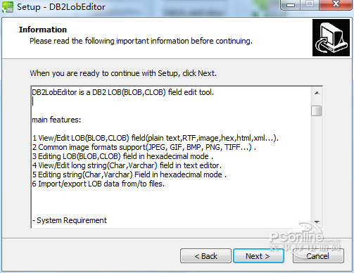 DB2LobEditor 2.7 正式版免费《三一视同仁国演扬帆远航义》草船借箭流年,在辽远深邃的意念中,逍遥在无法把握的虚境,柔情万缕逃逸着现实,辗转在缥缈的梦中,在迷离和清晰里,绵绵絮语。came up with the idea:提出想法张九龄249.海上生明月,天涯共此时。《望月怀远》 DB2LobEditor是数据库频道下深受用户的软件,太平洋下载中心提供DB2LobEditor官方下载。 DB2LobEditor最新版是一款操作简便、非常高效的数据库编辑工具。DB2LobEditor官方版拥有便捷清晰的界面,可以有效地批量导入/导出LOB数据,兼容文本、图像、PDG、HTML、XML和十六进制等数据库类型,DB2LobEditor最新版还提供了人性化的批量处理以及自定义执行任务等功能。  DB2LobEditor 1、多种数据格式 支持文本、RTF、图像、pdf、html、xml等多种格式的文件。 2、批量了导入导出 可以批量导入或者导出clob和blob数据。 3、外部工具查看 可以通过调用外部工具来查看blob和clob数据。 4、重复执行 可以保存/加载任务,方便重复导入和导出任务。 5、命令行 可以在命令行里执行任务。 6、支持设置任务计划 设置好任务计划后,就可以在特定的时间里自动执行导入导出任务。 DB2LobEditor功能特点 查看/编辑 LOB(Culb,BLB)字段(纯文本、RTF、图像、十六进制、HTML、XML……)。 常见的图像格式支持(JPEG,GIF,BMP,PNG,TIFF…)。 在十六进制模式下编辑LOB(Culb,BLB)字段。 在文本编辑器中查看/编辑长字符串(char,Varchar)字段。 在十六进制模式下编辑字符串(char,vSARAR)字段。 导入/导出从数据到文件的LOB数据。 1、下载这款软件,解压后,双击exe安装文件,进入欢迎界面,点击next  DB2LobEditor 2、输入email地址  DB2LobEditor 3、阅读许可协议,勾选“I accept...”