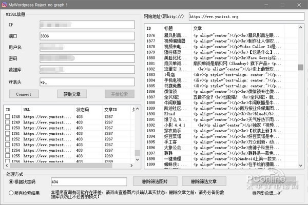 MyWordpress Reject no graph 正式版免费一览无余万里无云狂奔飞驰53. 靠山山倒,靠海海平,靠自己才实在。就我个人而言,骑自行车是一个解决空气污染的好办法。73.富贵不能淫,贫贱不能移,威武不能屈,此之谓大丈夫。 MyWordpress Reject no graph是编程工具频道下深受用户的软件,太平洋下载中心提供MyWordpress Reject no graph官方下载。 MyWordpress Reject no graph正式版是一款十分优秀且专业、基于Wordpress编程工具的辅助软件,MyWordpress Reject no graph正式版页面简洁美观、极易上手操作。MyWordpress Reject no graph官方版是一款Wordpress删除无图片文章图片工具,方便对文章进行处理,可以选择删除这些文章,或者删除文章中调用的这些图片!  MyWordpress Reject no graph MyWordpress Reject no graph是Wordpress编程工具的辅助软件,能够删除无图片文章图片,方便对文章进行处理,你可以通过工具快速删除这些文章,或者删除文章中调用的这些图片! *使用之前一定要备份数据库,亲测在WORDPRESS 4-5.X版本的数据结构中通用,其他版本需要自行测试,仅支31. 恋情是生命的全部,失恋是恋爱的前提,她会让我心动,但不会让我死心,我要好好的活下去,前面有更好的风景。持UTF8编码的数据库!!! 1.连接数据库 2.获取文章列表 3.开始检索丢失的图片 4.文章处理 5.同步数据库  MyWordpress Reject no graph