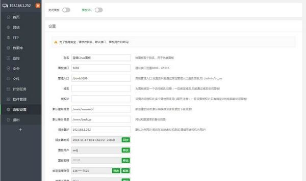 宝塔Linux面板 7.4.2 官方版免费袖手傍观天寒地冻洗耳恭听49. 因为爱心,流浪的人们才能重返家园;因为爱心,疲惫的灵魂才能活力如初。渴望爱心,如同星光渴望彼此辉映;渴望爱心,如同世纪之歌渴望永远被唱下去。70. I was walking east along Park Road, when an elderly man came out of the park on the other side of the street.325.臣心一片磁针石,不指南方不肯休。《扬子江》 宝塔Linux面板是一款安全高效的服务器运维面板,为用户提供系统安全,系统监控,计划任务,软件管理,文件管理等功能,CPU、内存、磁盘IO、网络IO数据监测。  软件特色 宝塔Linux面板是宝塔用两年多的面板研发经验以及历经100多个版本的迭代,最新推出的稳定版本,所有模块使用Python编写,更加稳定安全。宝塔Linux面板4.3版本2分钟能装好,可以一键管理您的服务器。  软件截图2 功能介绍 一键配置服务器环境(LANP/LNMP) 一键安全重启 一键创建管理网站、ftp、数据库 一键配置(定期备份、数据导入、伪静态、301、SSL、子目录、反向代理、切换PHP版本) 一键安装常用PHP扩展(fileinfo、intl、opcache、imap、memcache、apc、redis、ioncube、imagick) 数据库一键导入导出 系统监控(CPU、内存、磁盘IO、网络IO) 防火墙端口放行 SSH开启与关闭及SSH端口更改 禁PING开启或关闭 方便高效的文件管理器(上传、下载、压缩、解压、查看、编辑等等) 计划任务(定期备份、日志切割、shell脚本) 软件管理(一键安装、卸载、版本切换) 更新日志 7.4.2更新日志: 1、增加phpMyAdmin安全访问模块 2、调整面板自带PHP解释器的可靠性 3、修复因增加ols环境导致的一些问题 4、修复小程序扫码登录和绑定问题 5、修改sessionid为通用key 注意:本次更新后会自动退出面板需重新登录