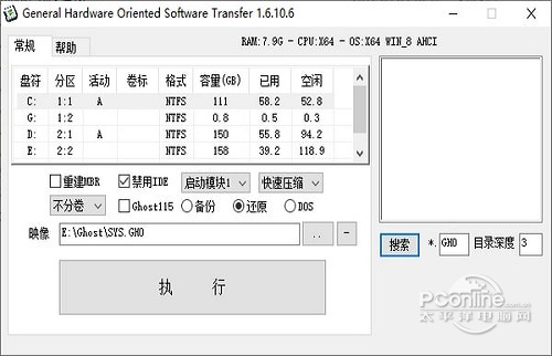 General Hardware Oriented Software Transfer官方版是一款出色的硬盘备份还原工具,可以实现FAT16、FAT32、NTFS、OS2等多种硬盘分区格式的分区及硬盘的备份还原。操作简单好用,大家可以用它来备份还原和安装系统,用它安装系统只需下载的ISO镜像解压到除了c盘外的任意盘根目录下,然后把硬盘安装器放到该盘,双击打开,就能看到它选择了解压出来的GHO镜像,点击确定后就可以撒手不管了。以GHOST为内核的硬盘备份还原速度快,可以在Windows平台使用,不用设置BIOS,支持启动盘者和无光驱用户使用。 1.运行ghost安装器,选择要安装的分区,选择要安装的ghost镜像; 2.然后开始。接着电脑会重启,重启不要动,会进入安装界面; 3.看你的硬盘是不是IDE,不是的就选屏蔽IDE、是的就选启用IDE,接着点确认开始安装; 4.然后又会重启,进入系统驱动安装,然后就能进系统了。 1.系统自动备份 选“备份”->点击“...”->选择保存目录->执行 即可。 2.系统自动还原 选“还原”->点击“...”->选择Ghost镜像->执行。 3.从ISO中还原Ghost镜像 选“还原”->点击“...”->文件类型:光盘镜像(*.ISO)->选择iso文件->执行。 4.从网络中还原Ghost镜像 选“还原”->点击“...”->浏览网络中的机子->选择Ghost镜像—执行。 5.自动安装Ghost系统镜像 与程序同->目录,且Ghost镜像命名为SYS.GHO->执行。 6.进入纯DOS环境 选“DOS”->执行->手动Ghost。 春已归来,看美人头上,袅袅春幡。无端风雨,未肯收尽馀寒。年时燕子,料今宵梦到西园。浑未辨、黄柑荐酒,更传青韭堆盘。下床畏蛇食畏药,海气湿蛰熏腥臊。General,Hardware,Oriented,Software,Transfer,General,Hardware,Oriented,Software,Transfer下载,备份还原,系统工具Whether an individual saves too little or borrows too much depends on the purpose and extent of either activity. |